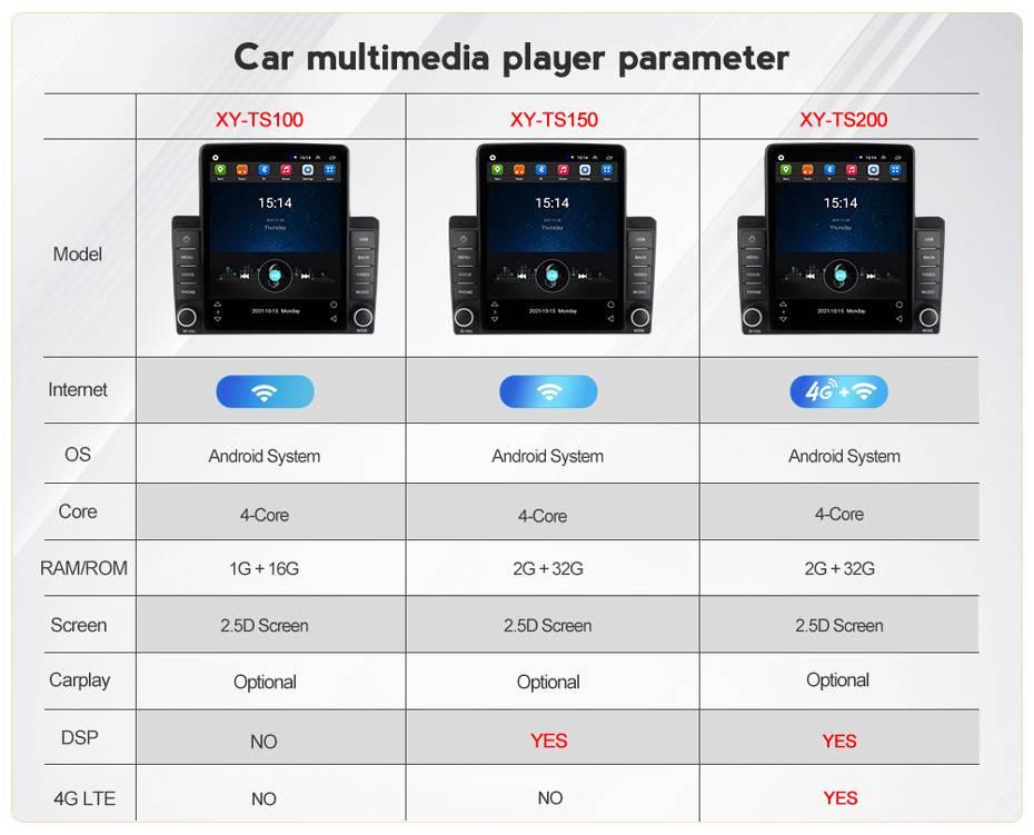 Все версии могут поддерживать WiFi, но только TS200 поддерживает 4G интернет со слотом для sim-карты
