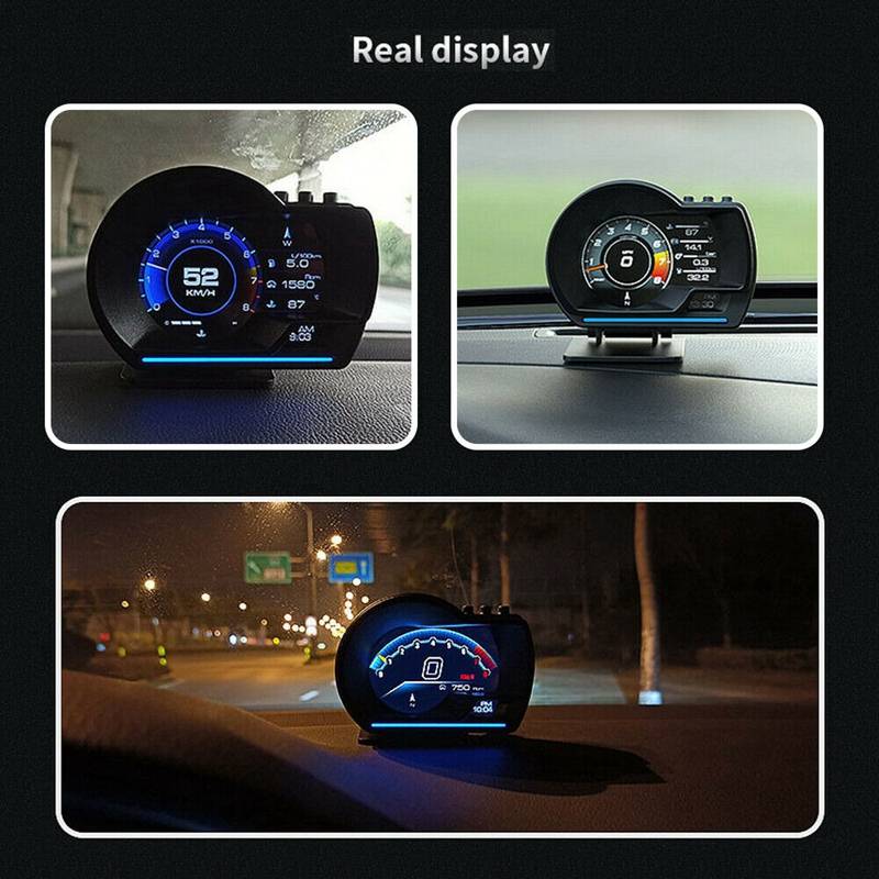 HUD OBD2+GPS Gauge Head Up Car Digital Display Speedometer RPM Alarm Water&Oil Temp Monitor Fault Code Elimination
