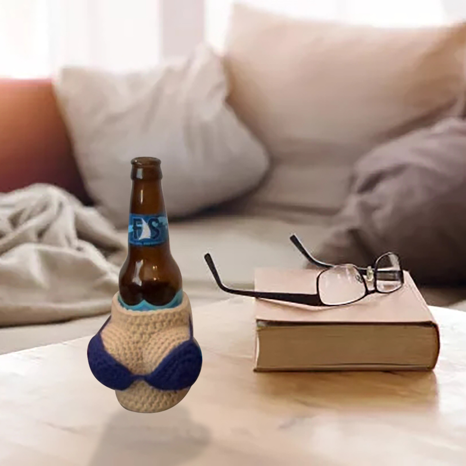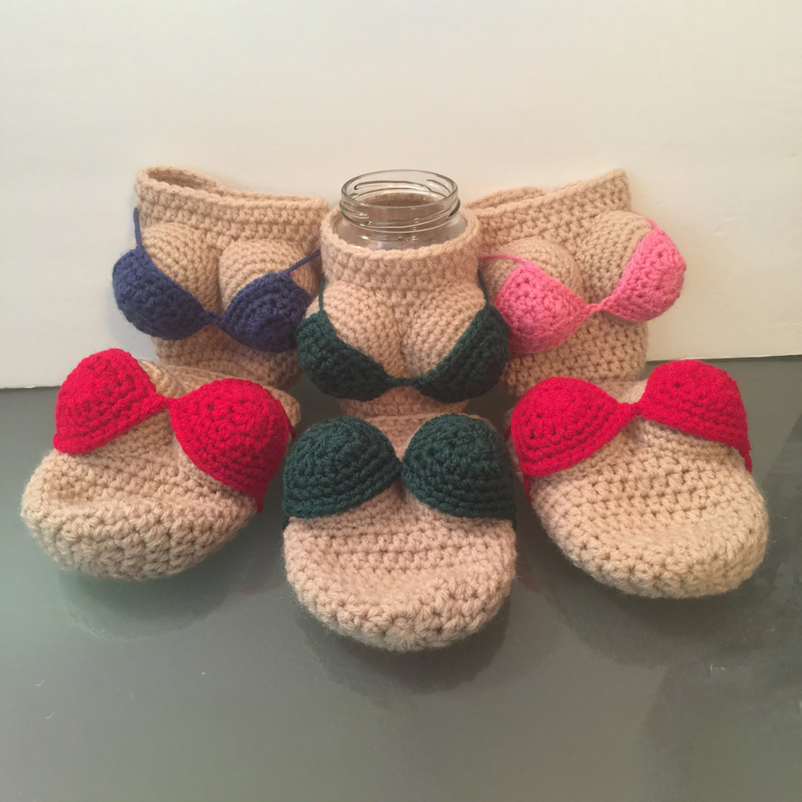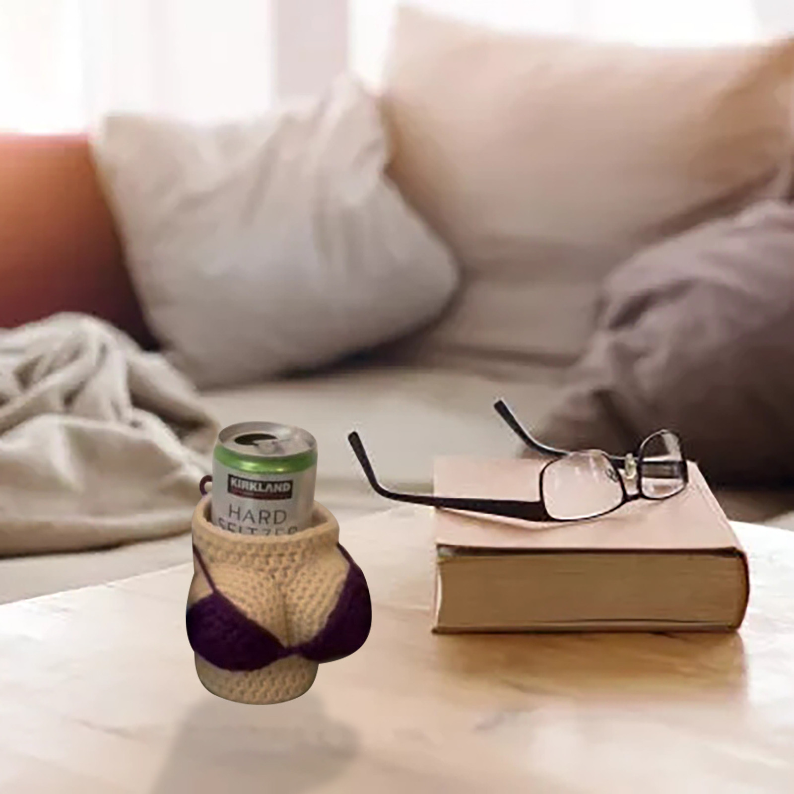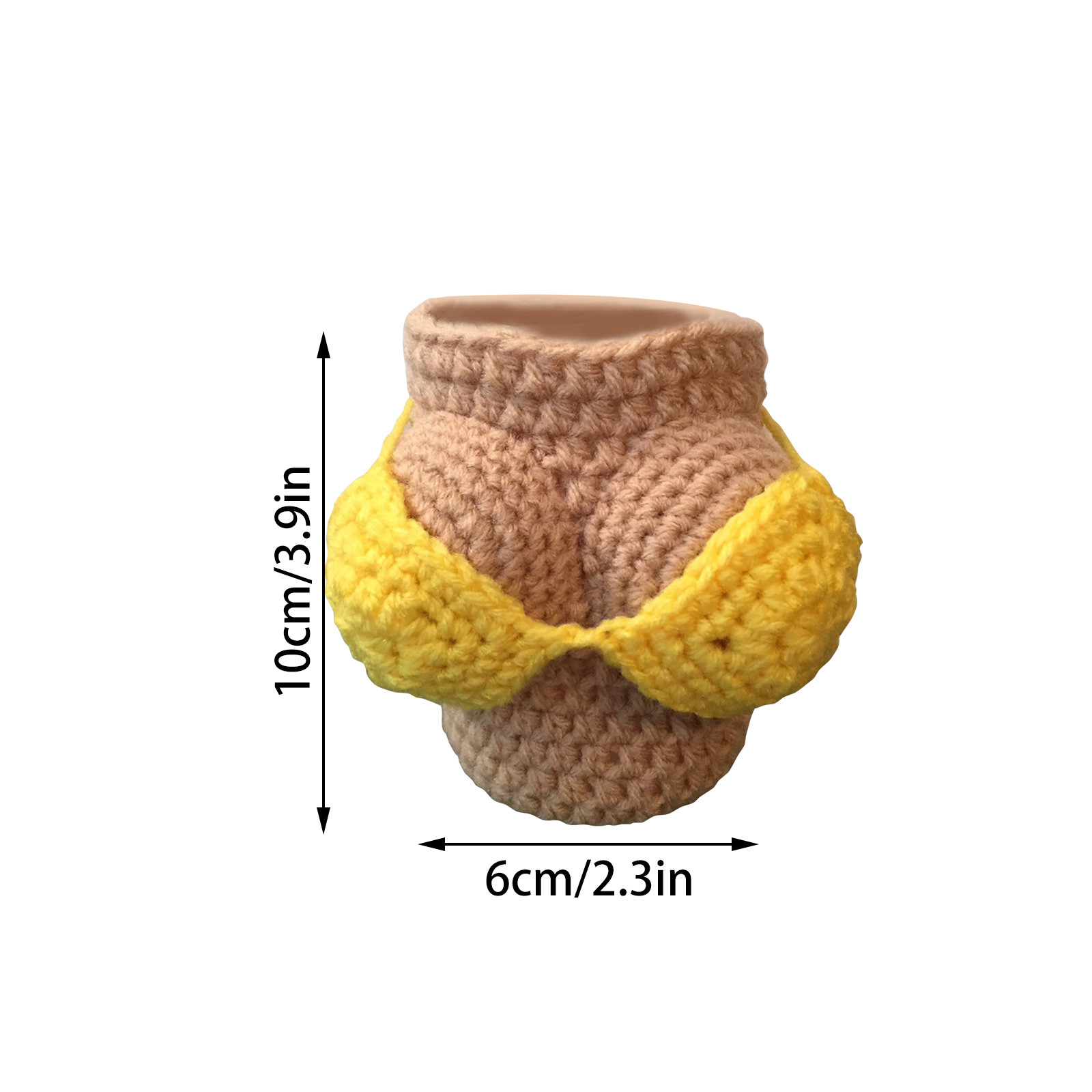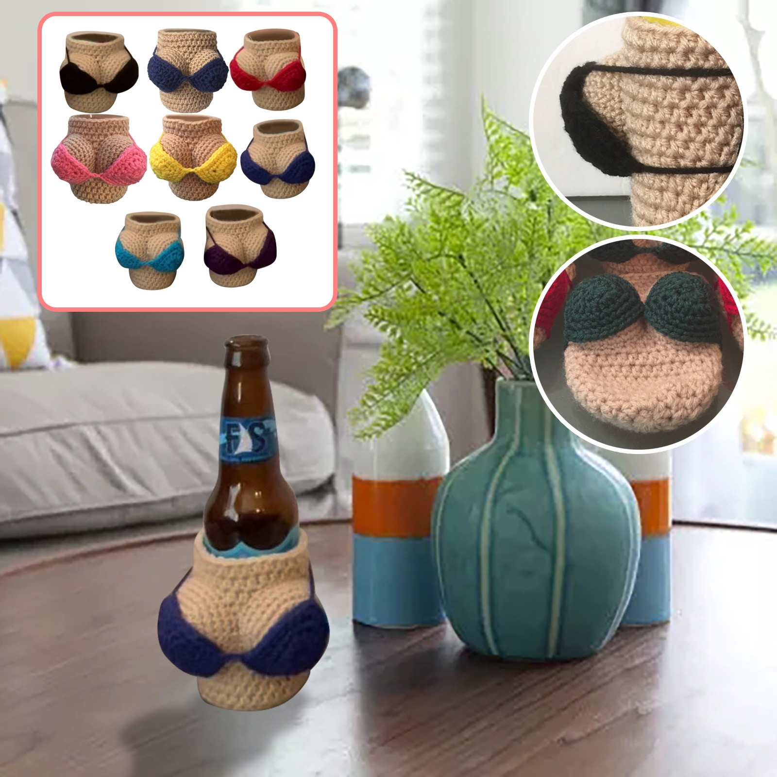 This is a handmade crocheted Cozy, which looks like the chest of a bikini top