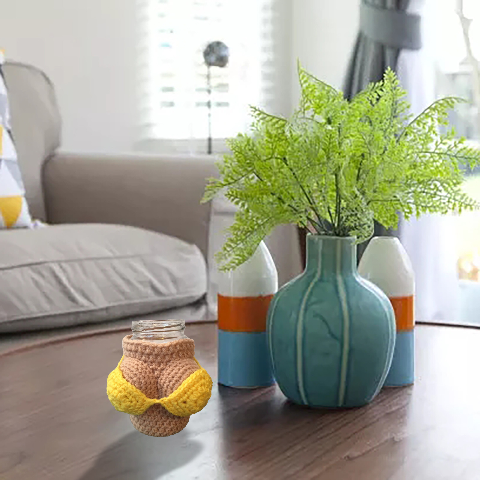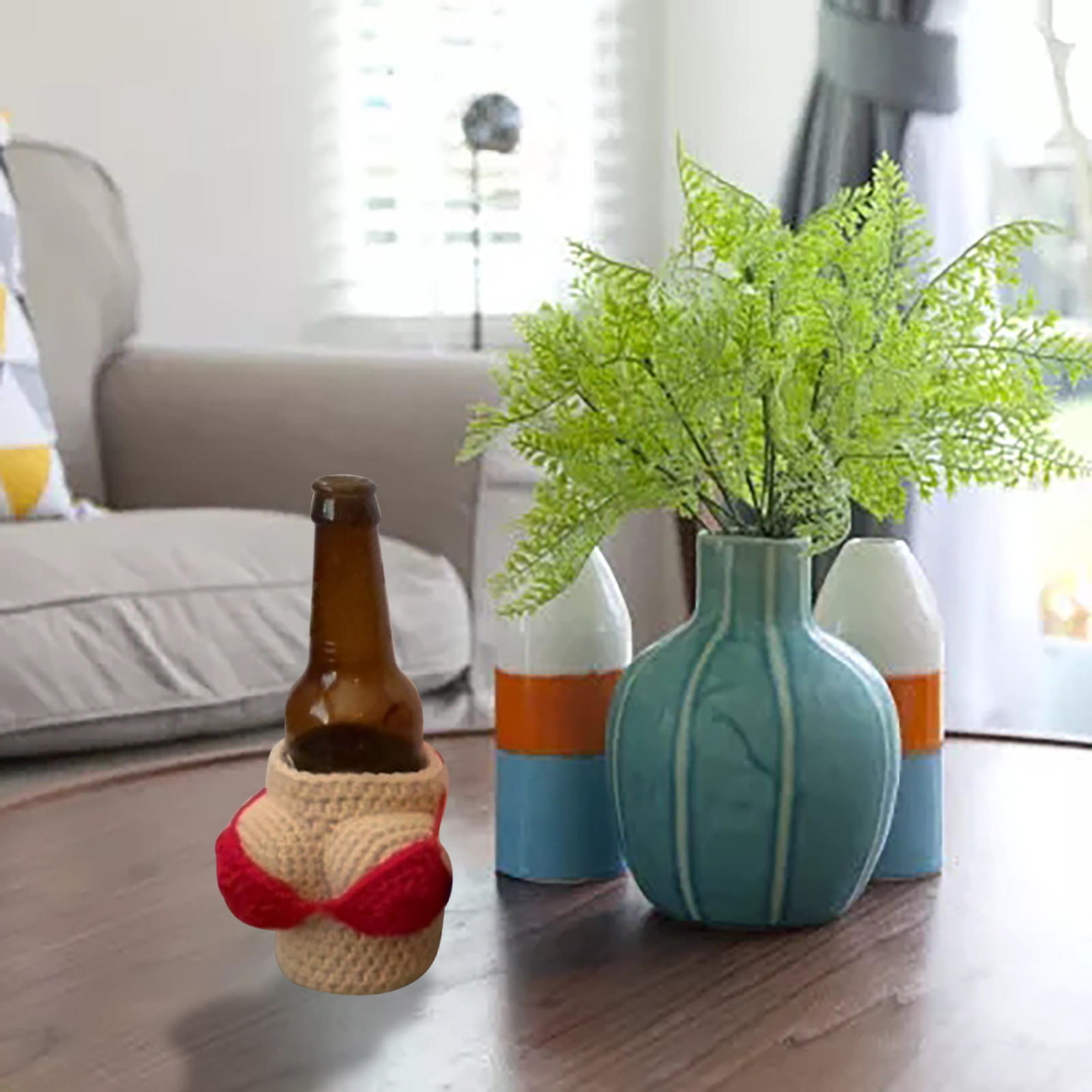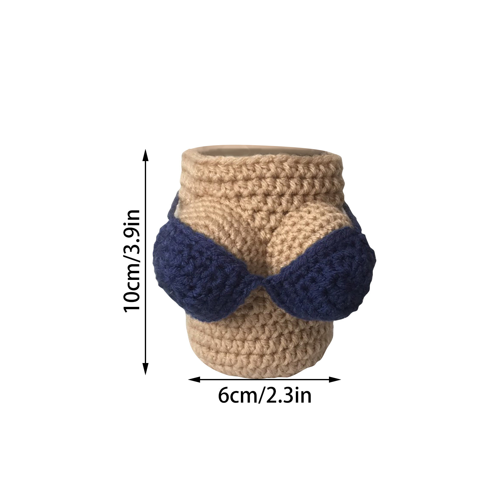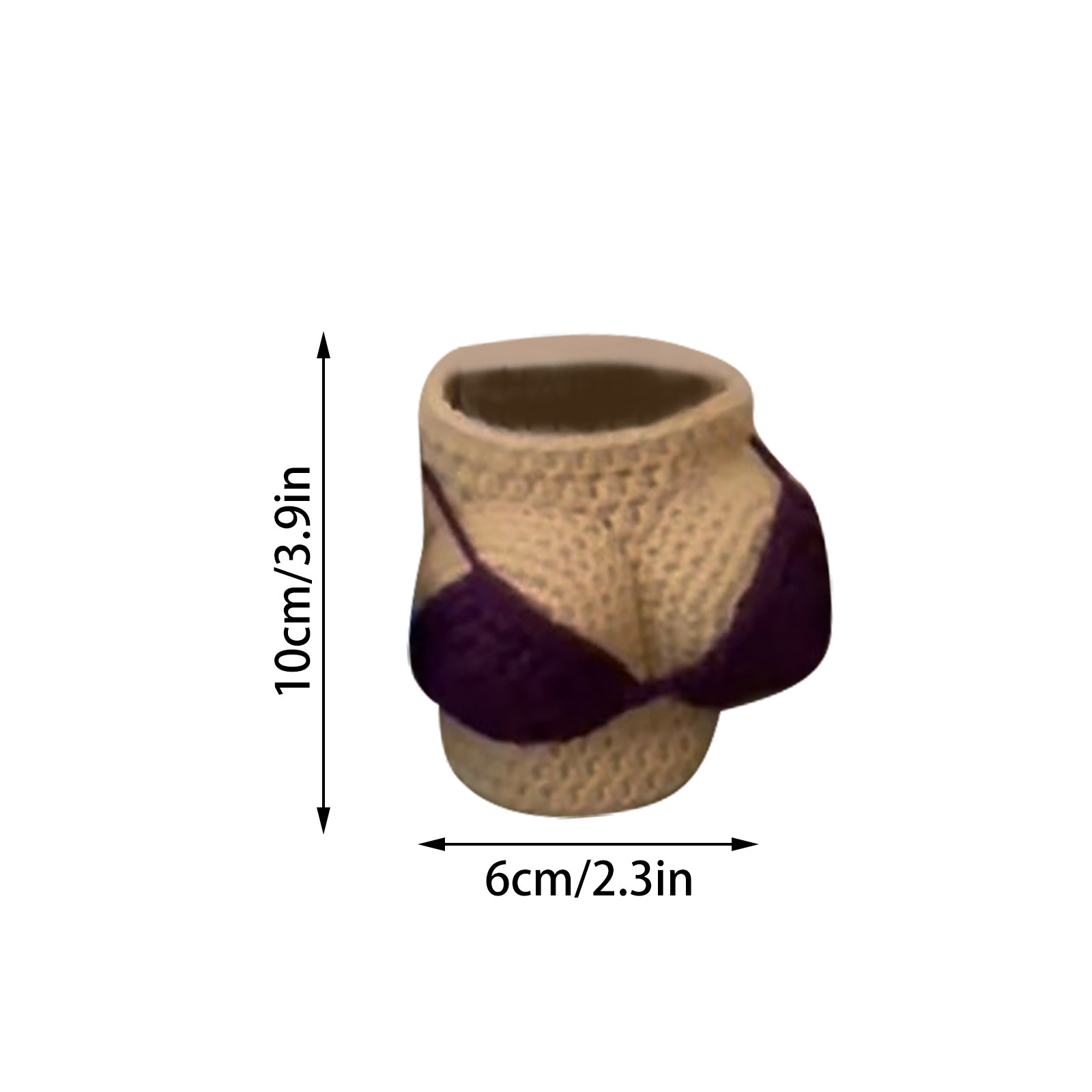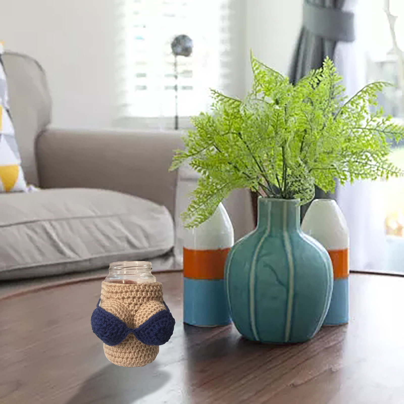 This is a handmade crocheted Cozy, which looks like the chest of a bikini top