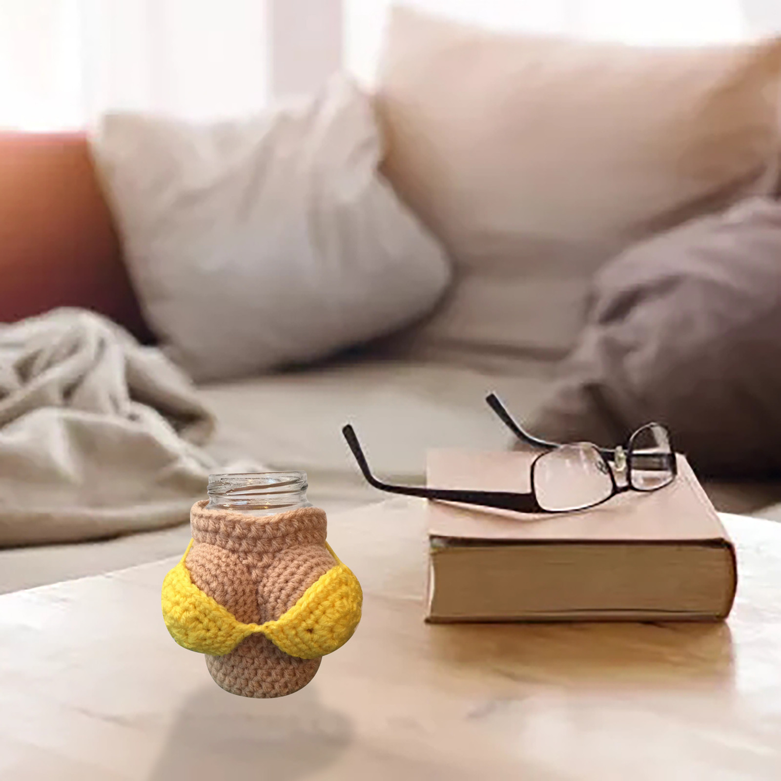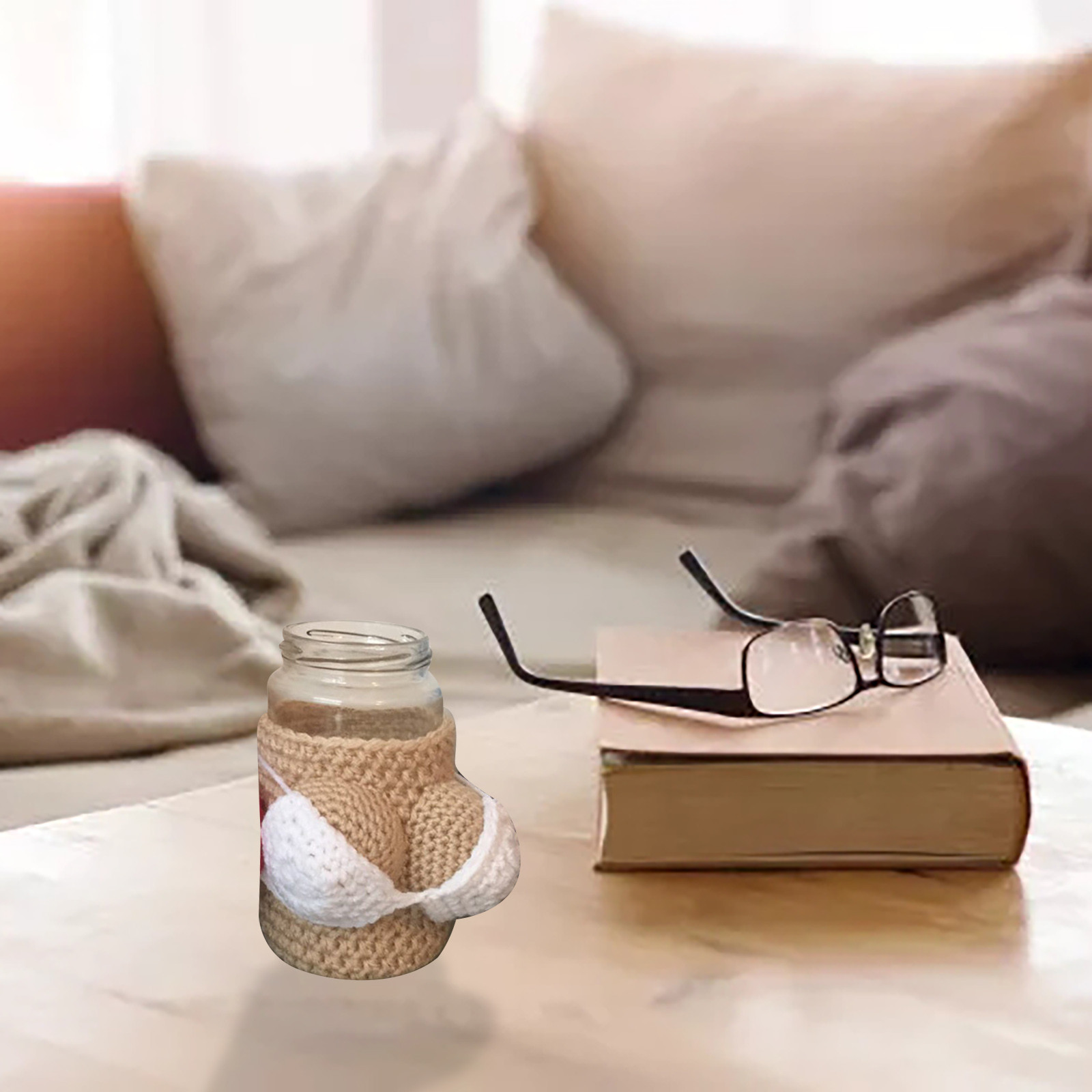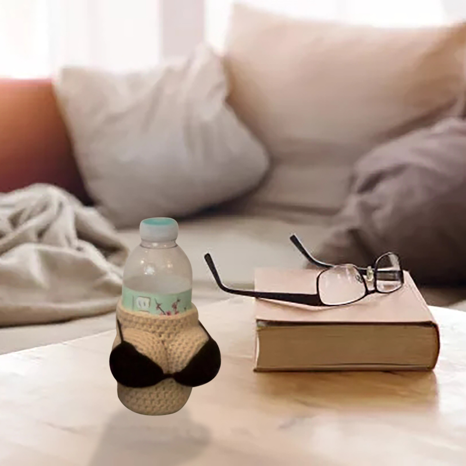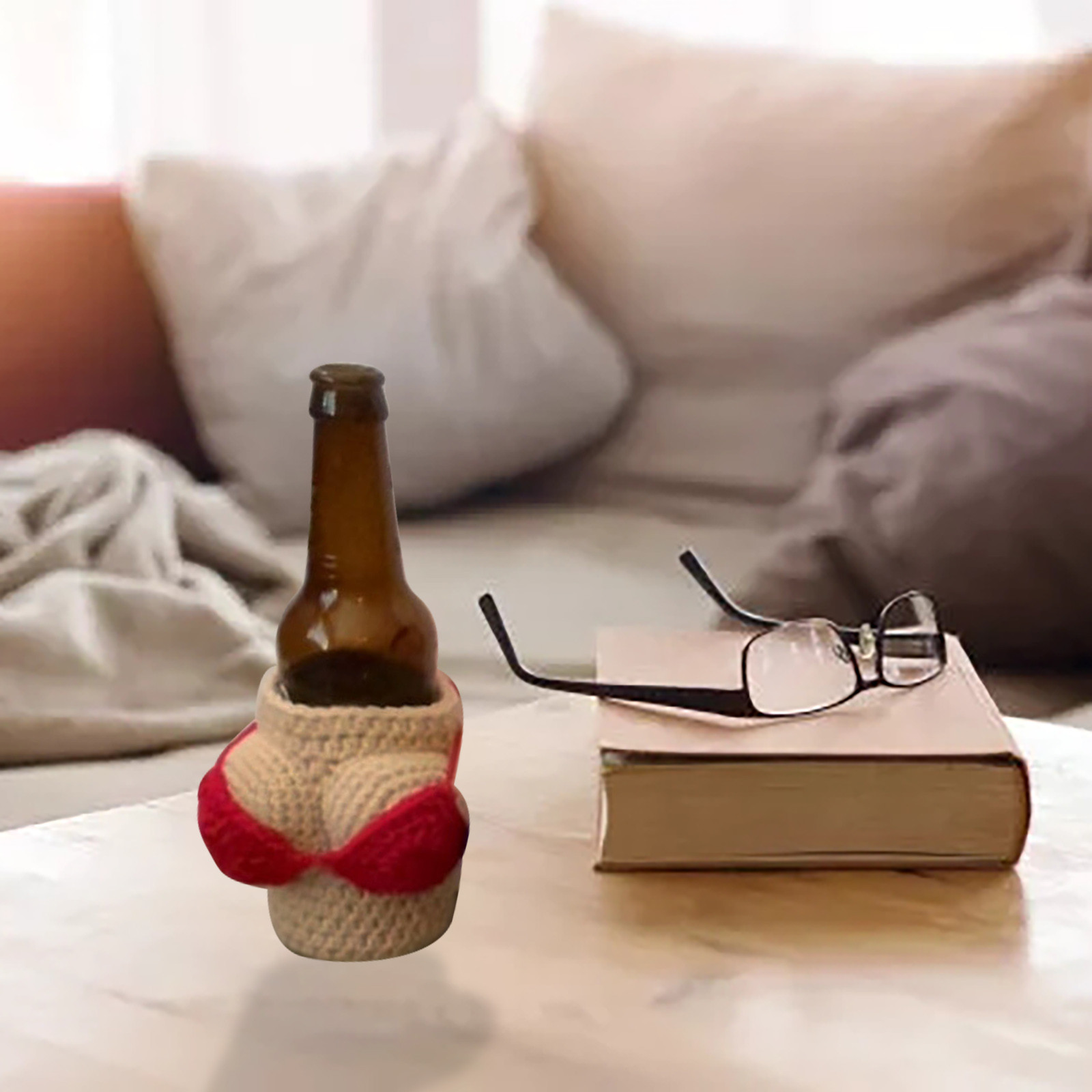 This is a handmade crocheted Cozy, which looks like the chest of a bikini top