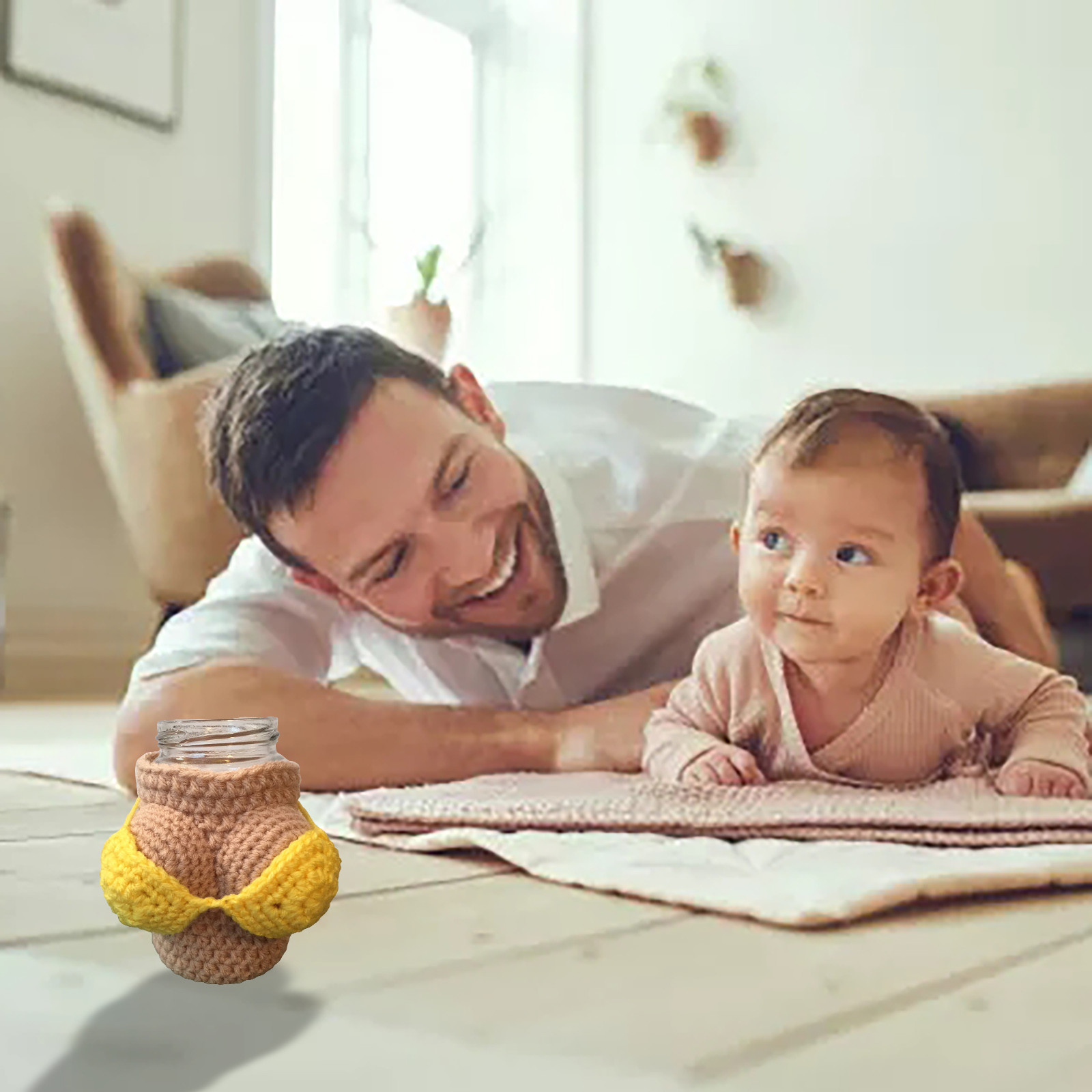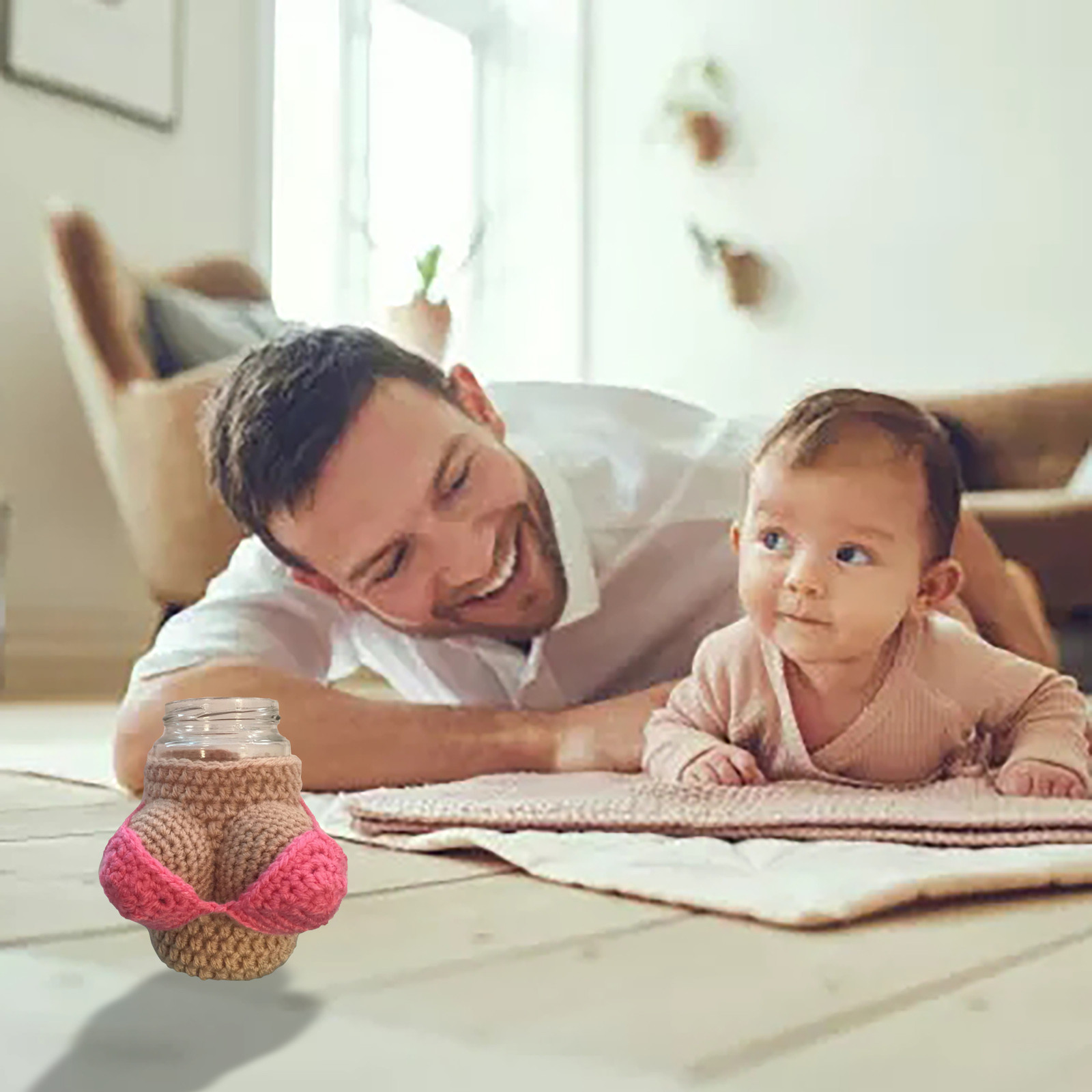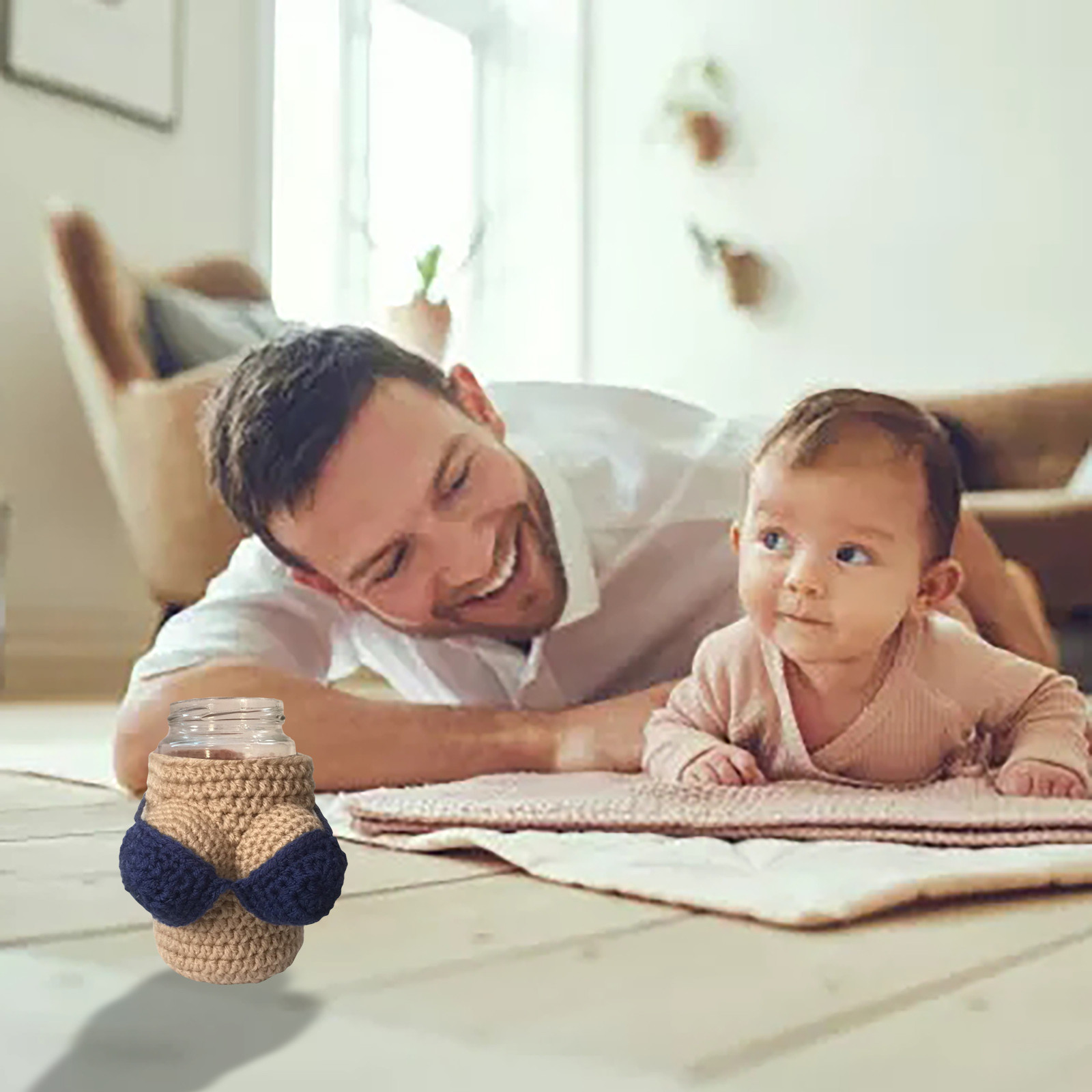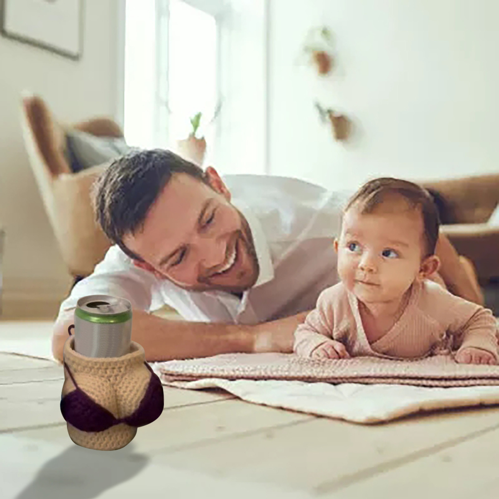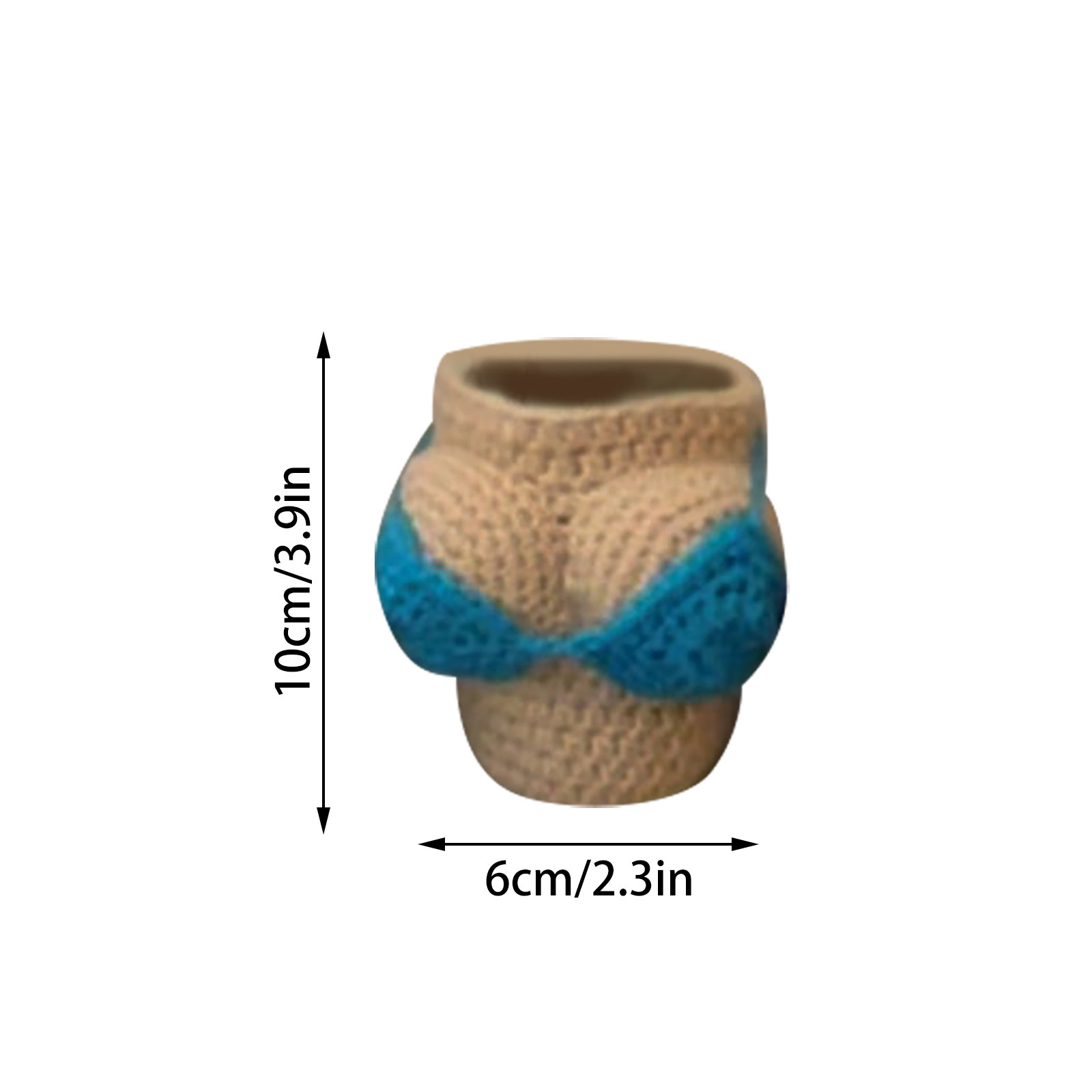 This is a handmade crocheted Cozy, which looks like the chest of a bikini top