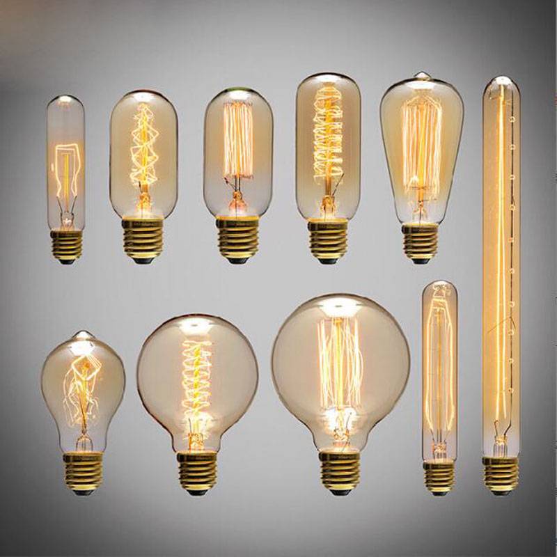 40 Вт Винтаж лампы Эдисона, "сделай сам" для E27 накаливания Ретро светильник лампа A19,G80,G95,ST64,T10,T185,T225,T300,T45,A19 ,ST58