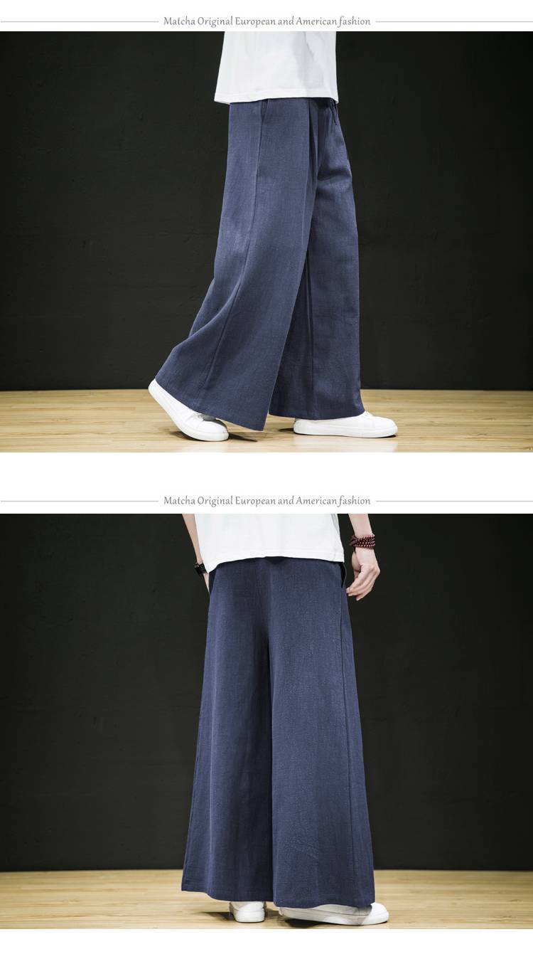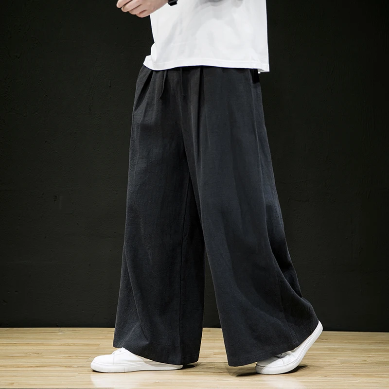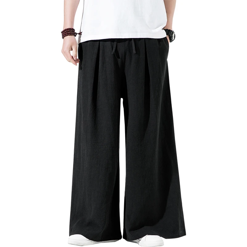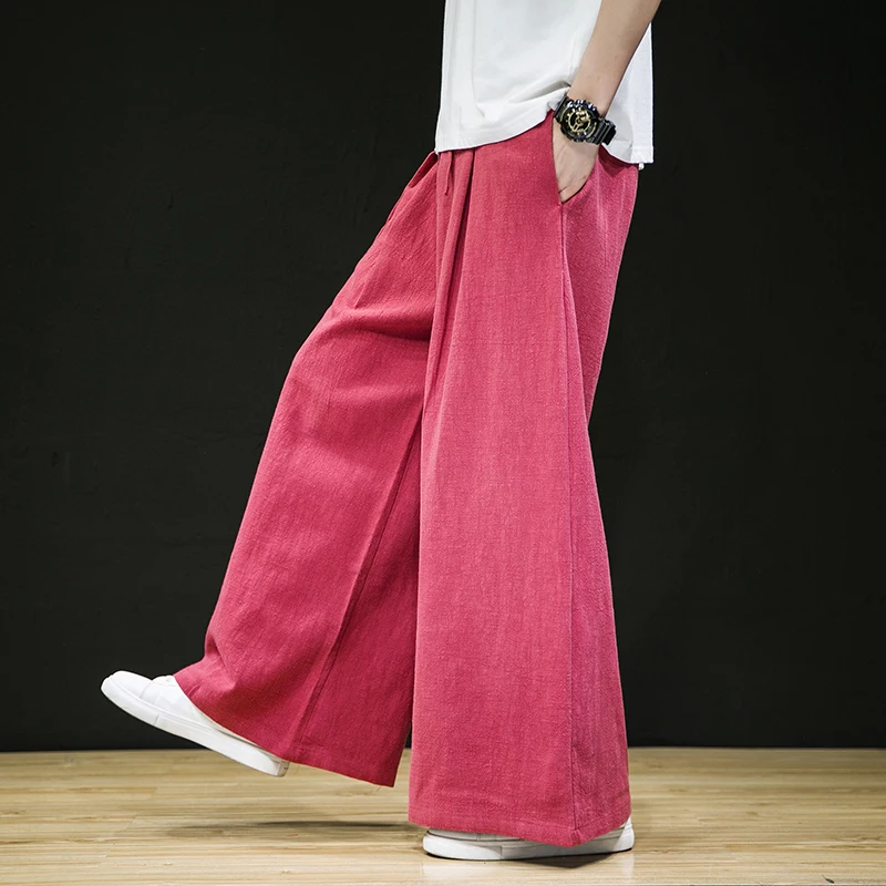 Хлопок, лен, широкие брюки, светильник, синие льняные брюки для мужчин, красный, китайский, Восточный стиль, Хакама, свободные, бордовые, монах, одежда, Zen Pants