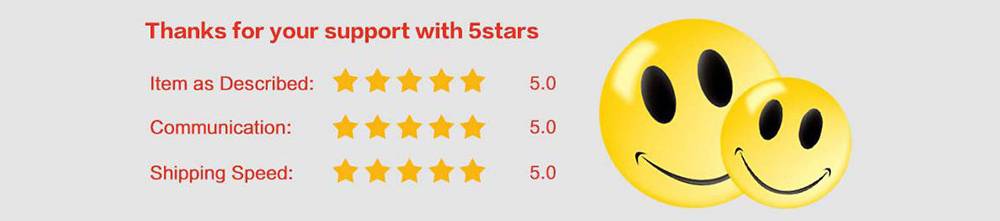 1. Если вы удовлетворены нашими продуктами и услугами, пожалуйста, дайте нам 5 звезд отзывы с длинными положительные отзывы и фотографией покупателя.