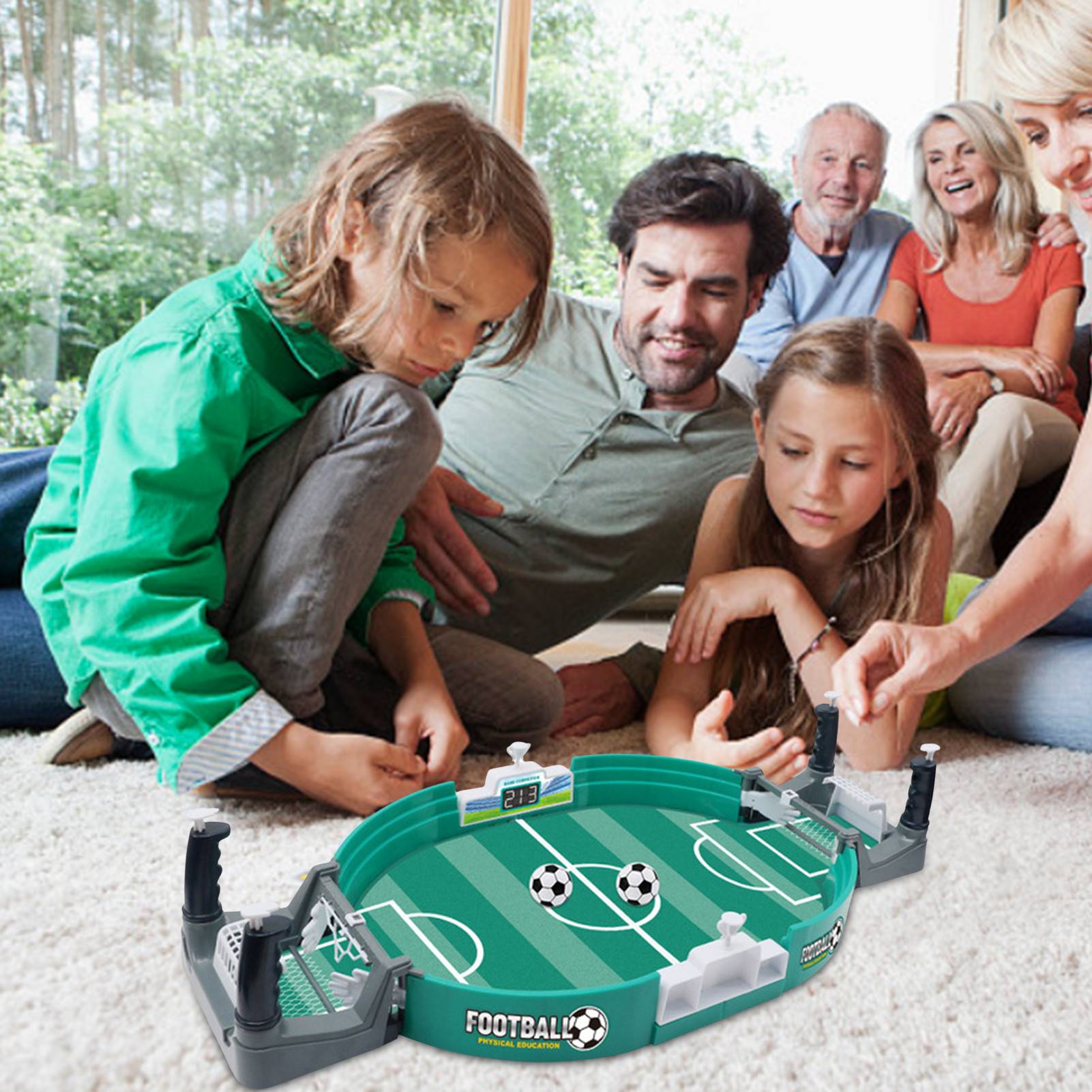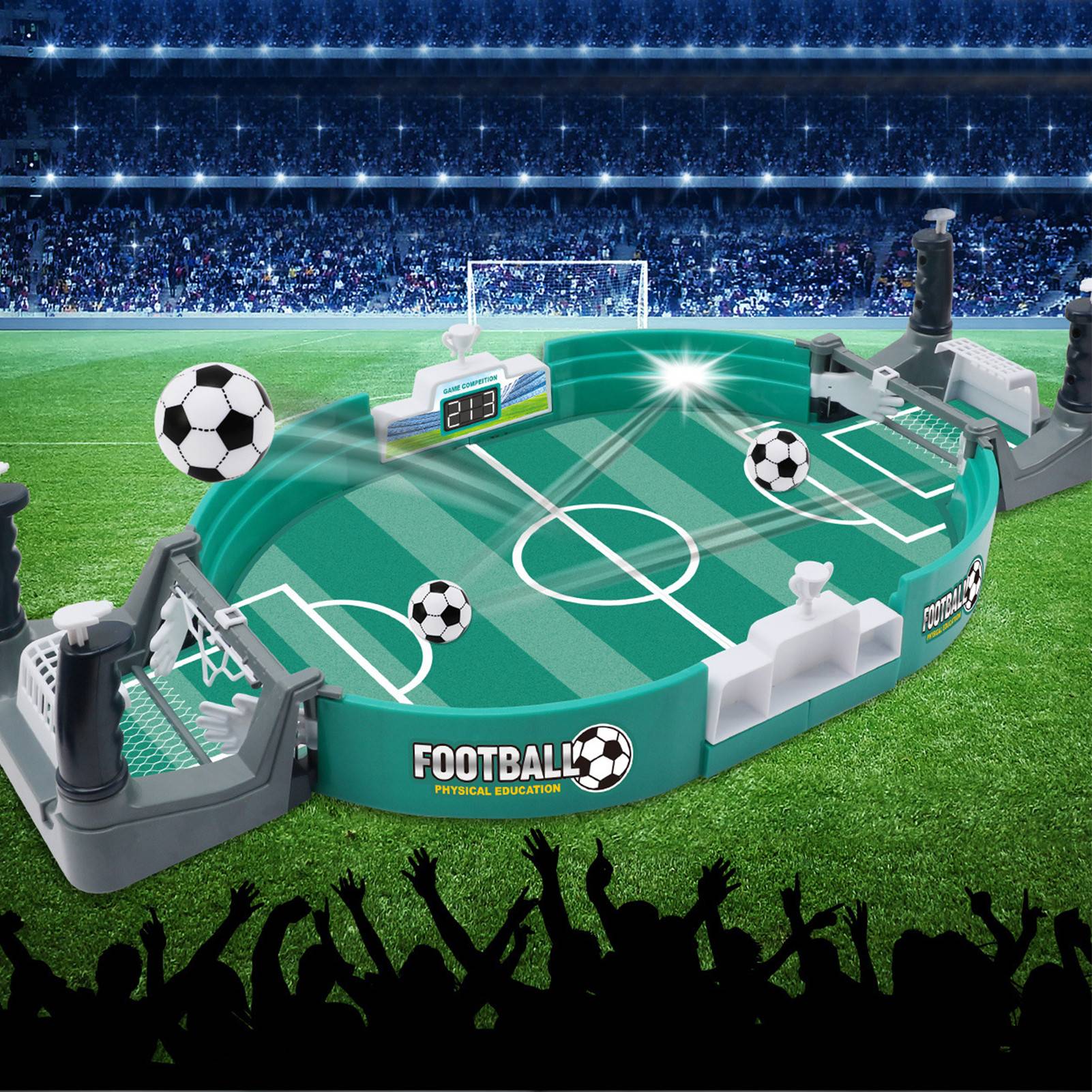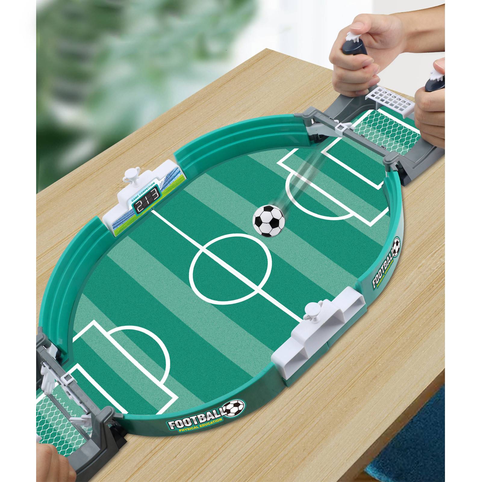 Мини-Настольный футбольный набор компактный и портативный, в том числе 4 контроллера, 2 футбольных мяча, 2 забора, 6 футбольных мячей, 2 пилота. Эта настольная футбольная игра отлично подходит для всех возрастов. Достаточно маленький для детей, чтобы легко маневрировать, но достаточно прочный для взрослых, чтобы наслаждаться. Все могут оценить эту игрушку в семейную игровую ночь.Спецификация: