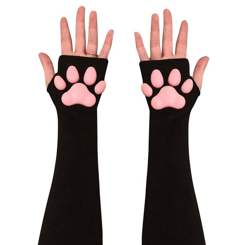 Kawaii, варежки с кошачьей лапой, перчатки с 3D пальцами, бобы, перчатки без пальцев, кошачьи лапы, накладки, рукава, кошки, аксессуары для косплея