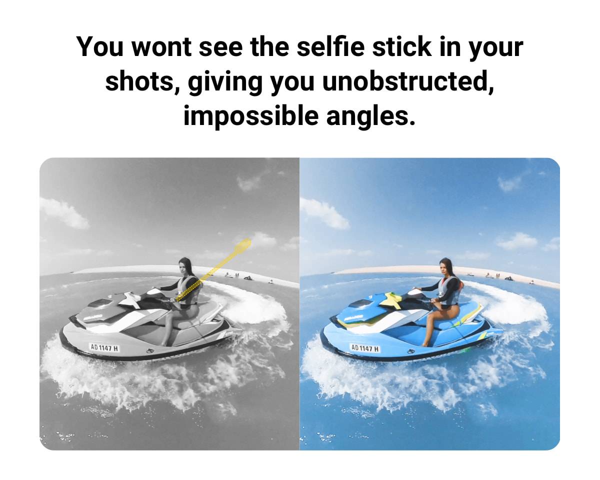 2. Автоматическое снятие с 360 снимков, чтобы дать вам беспрепятственные, невозможные углы (невидимый эффект селфи-палки может быть достигнут только с 360 камерами).