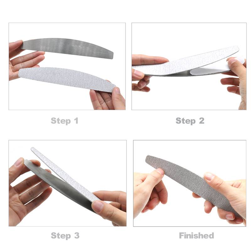 (2) используются высококачественные материалы для пилок и предназначены для салонных принадлежностей. Стальное основание прочное, абразивное, легко пилить и быстро чистить. Эта металлическая пилочка для ногтей имеет липкую и легко выдвижную пилку для ногтей, которую можно сбрасывать после завершения работы.