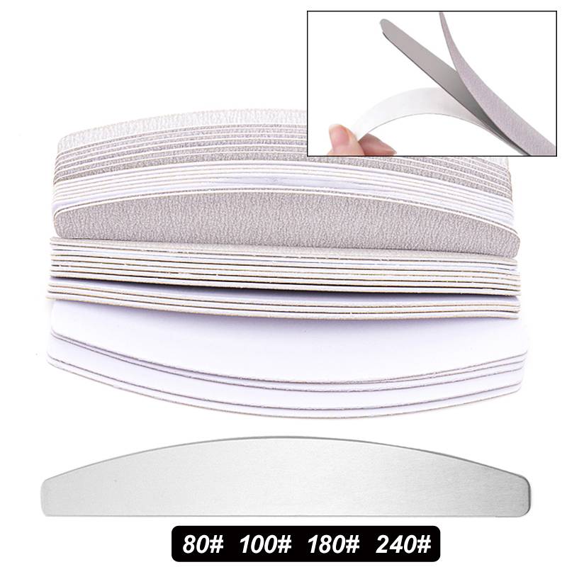 10 шт. полумесяц прямая Съемная наждачная бумага пилка для ногтей со стальной ручкой 80/100/180/240 металлические Сменные пилочки одноразовые маникюрные накладки
