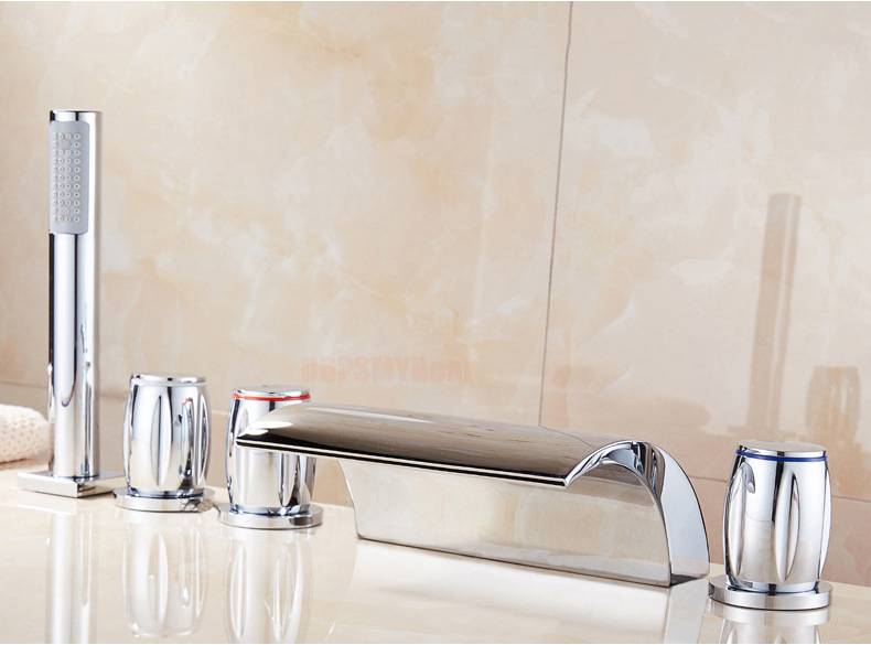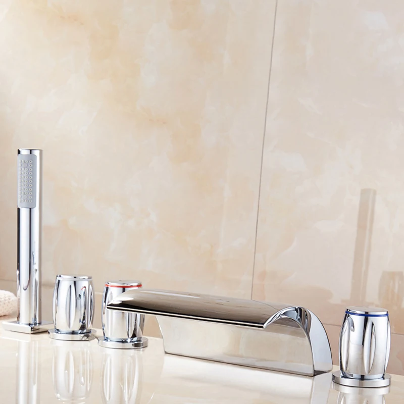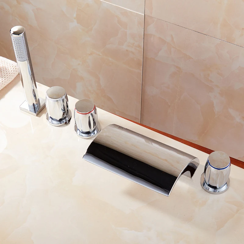 Серебряный смеситель для ванной, смеситель для душа, кран для ванной, кран для горячей и холодной воды, современный набор с 5 отверстиями Robinet Mitigeur