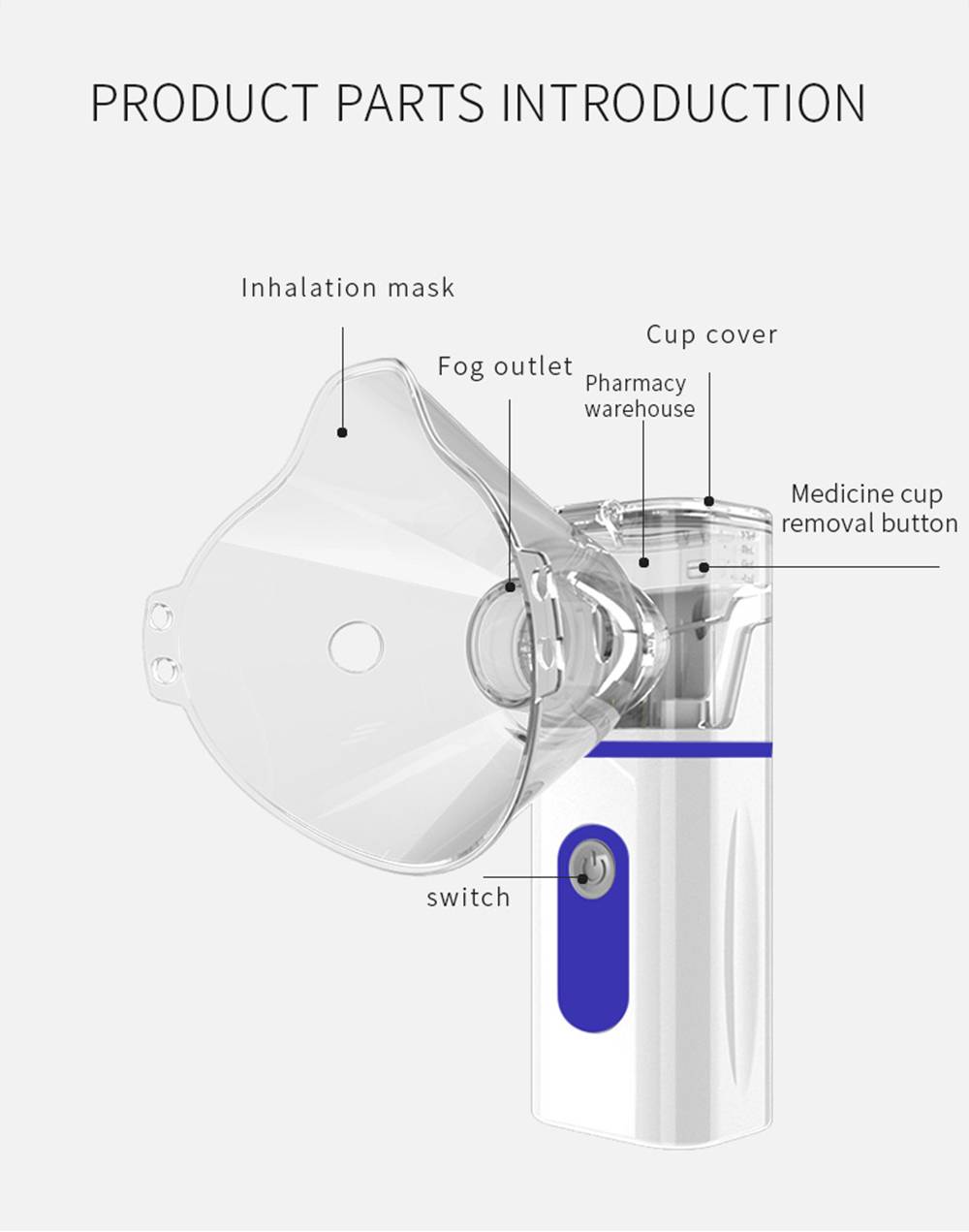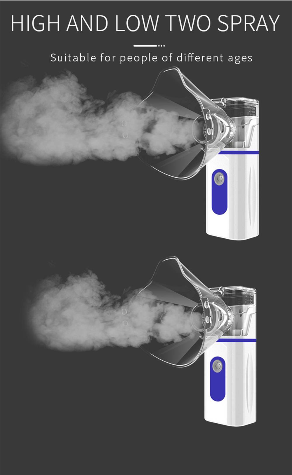 Он в основном используется для лечения различных заболеваний верхних и нижних дыхательных систем, таких как простуда, жар, кашель, астма, боль в горле, фарингит, ринит, бронхит, пневмокониоз и другие трахеи, бронхи, альвеоли и болезни грудной клетки. Небузированные ингаляции является важным и эффективным методом лечения респираторных заболеваний. Распылитель используется для распыления лекарственного раствора на мелкие частицы. Препарат попадает в дыхательные пути и легкие через дыхательные ингаляции, тем самым достигая безболезненности в целях быстрого и эффективного лечения, пожалуйста, Управляйте Методом Распыления при медицинской консультации.