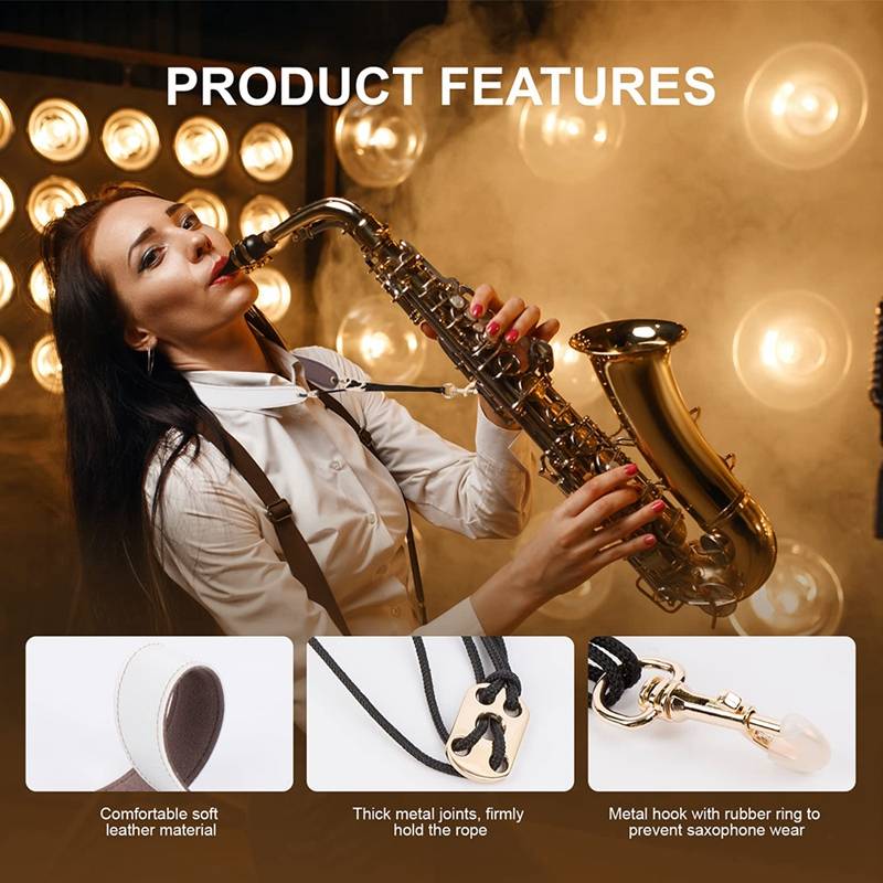 [Высококачественная кожа для защиты шеи], чтобы лучше защитить шею человека и предотвратить травму шеи человека, вызванную долгосрочным давлением от веса саксофона, ремешок для саксофона на шею изготовлен из высококачественной двухслойной кожи в качестве основного материала. Удобная и Высококачественная Белая кожа не только защитит шею во время исполнения, но и подчеркнет очарование вашей работы.