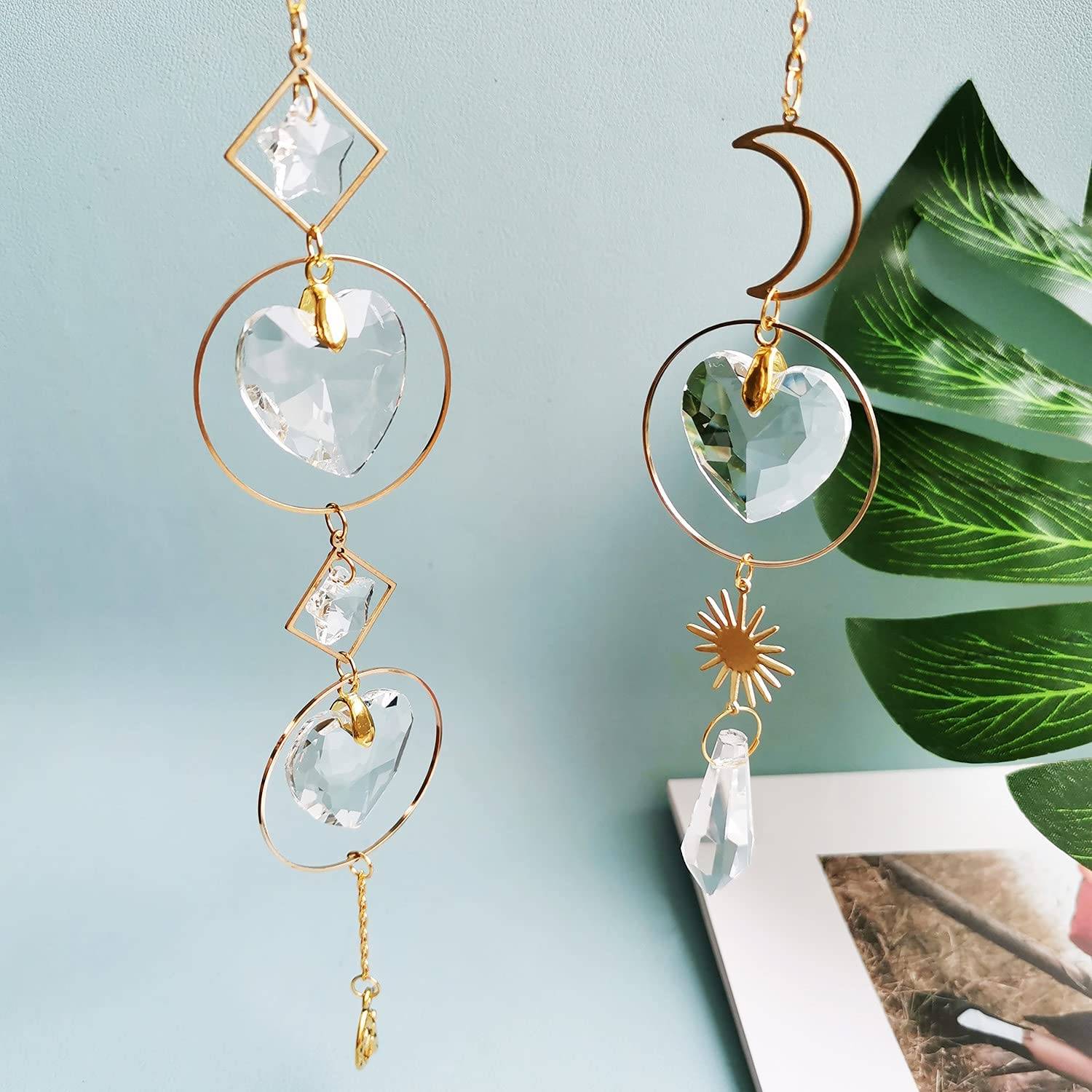 Хрустальный колокольчик, подвеска Звезда Луна, красочные бусины, Висячие капли для наружного помещения, сада, окна, свадебные занавески, люстра, DIY украшения