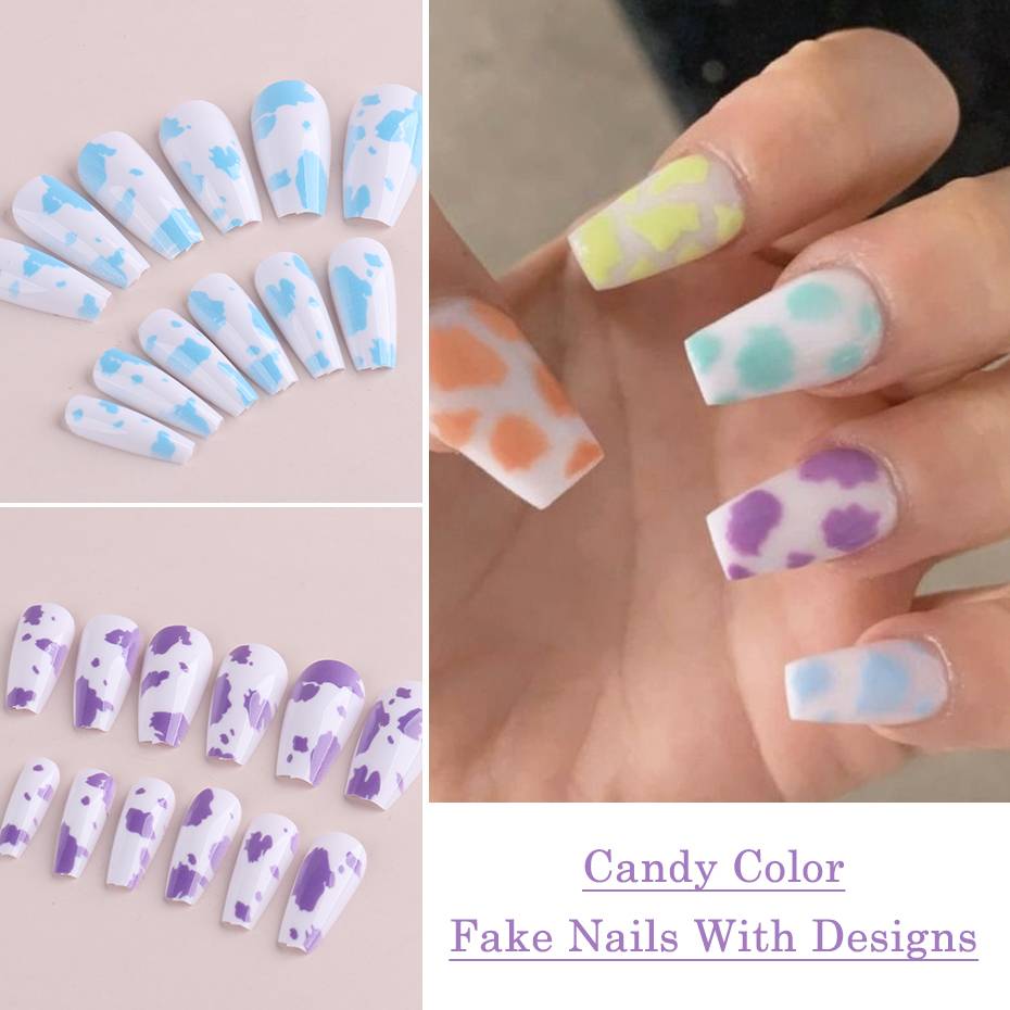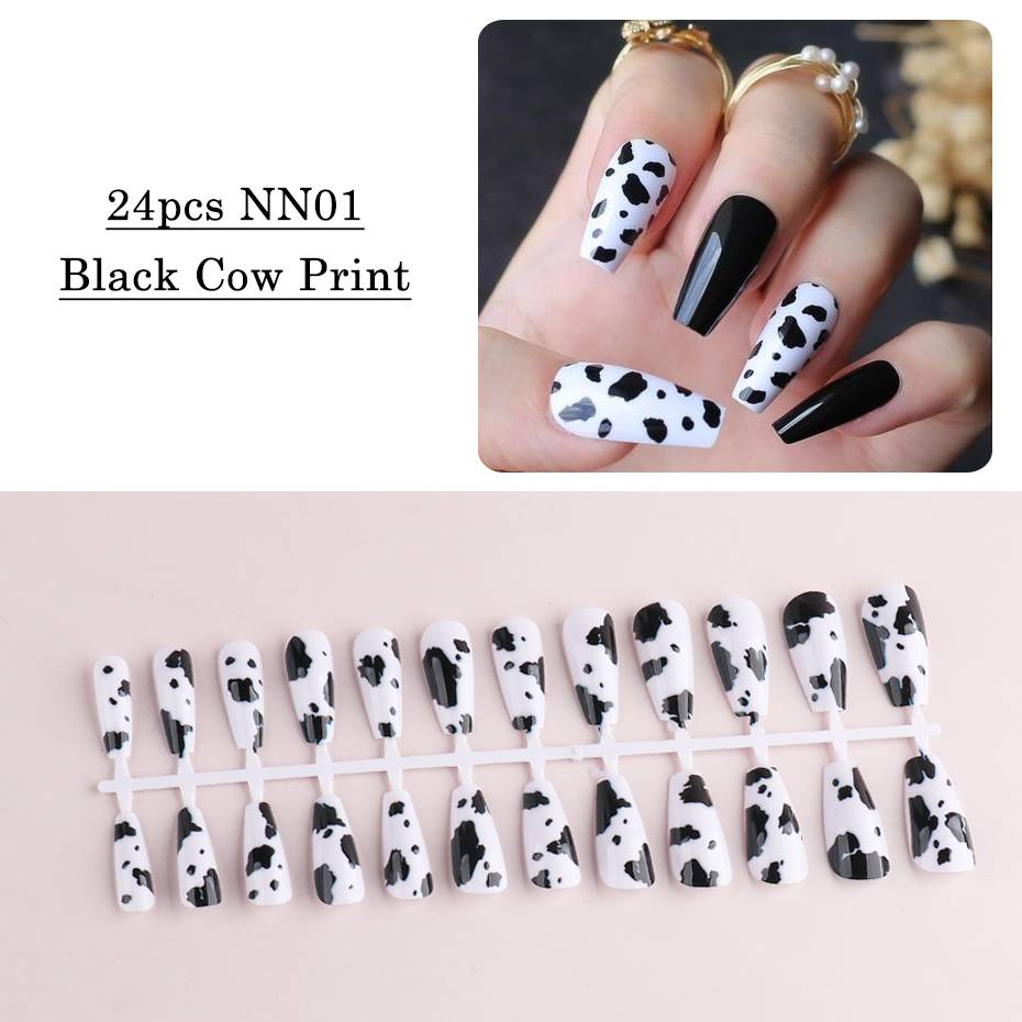 Одежда с принтом милой коровы; Нажмите на накладные ногти с дизайном конфеты цвет печати наклейка наконечник Средний квадратный накладные ногти для маникюра