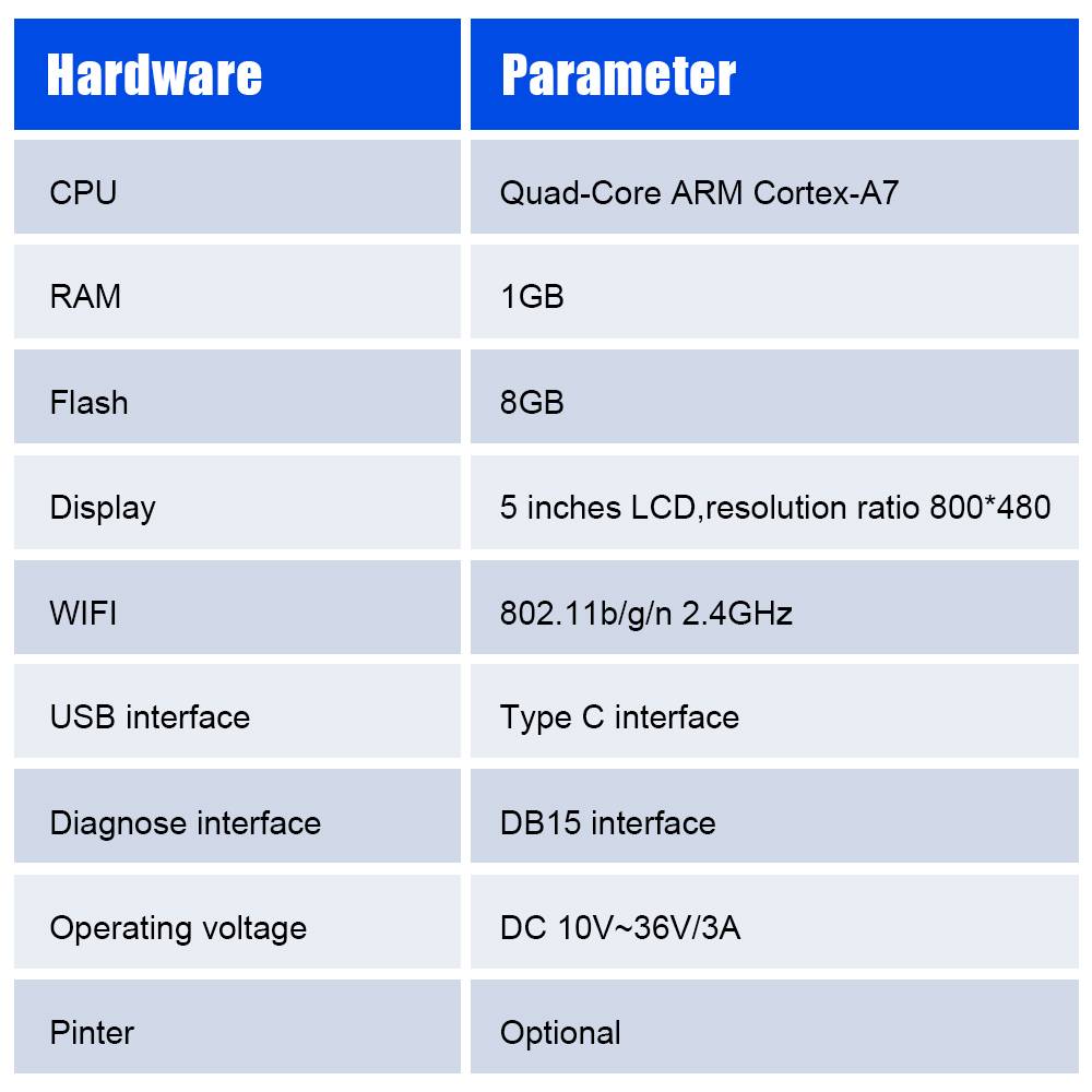 ● 5. Удобное управление и дополнительный принтер: четкий интерфейс работы и коммерческие транспортные средства подразделяются в соответствии с информацией о транспортном средстве. Кроме того, этот диагностический инструмент для грузовиков может предоставить функции обновления/скриншота/активации в один клик и печать диагностических отчетов в любое время. Под ссылкой имеется дополнительный принтер, который используется для диагностики данных и печати отчетов.