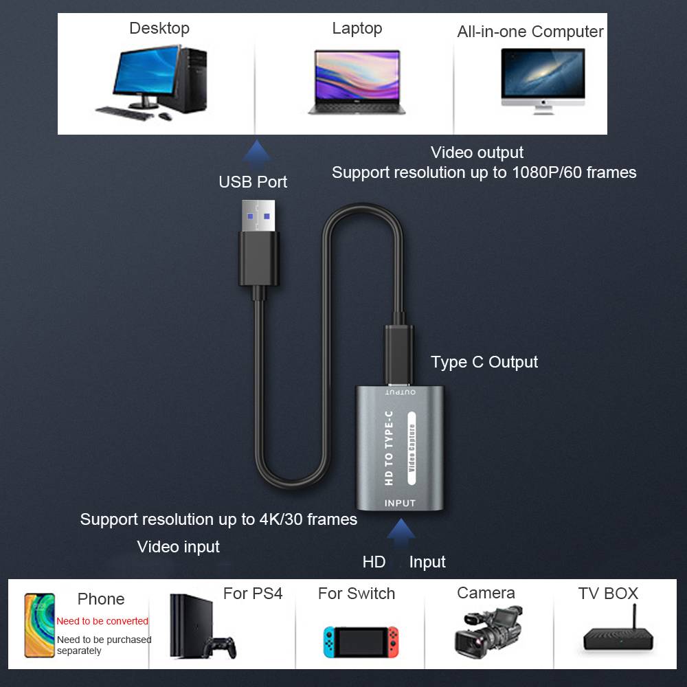 [Разрешение HD 4K] поддержка максимального входного разрешения 3840x2160 @ 30 Гц. В то же время максимальное выходное видео разрешения составляет 1920x1080 @ 60 Гц. Что делает прямую трансляцию гладкой и не застревает и приносит вам изысканное изображение.