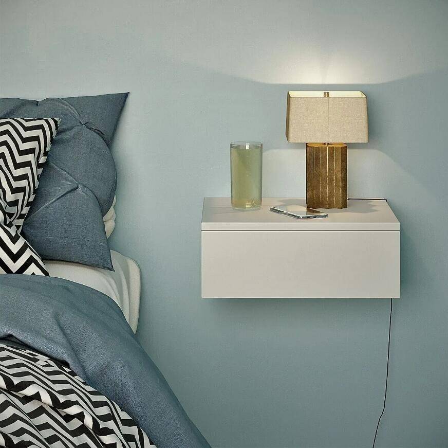 Гладкий, легкий и Высокофункциональный прикроватный столик для настенного крепления! Открытие ящика-сзади спереди: для этого имеется небольшое углубление для пальцев на нижней стороне шкафа.