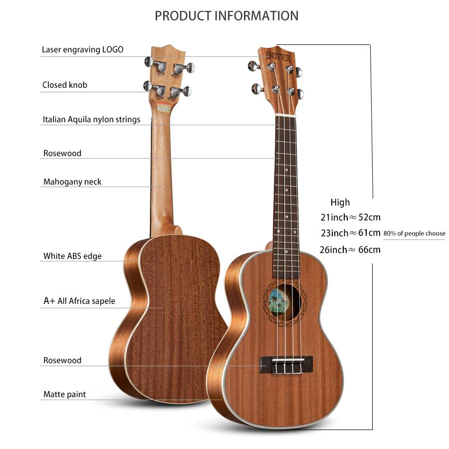 INITER Concert Ukulele IUC-100 является естественной версией отделки sapele их популярной и имеет все-sapele конструкции для обеспечения теплого, хорошо округленного тона. Его концертный корпус обеспечивает большой звук и отличную проекцию в любой игровой ситуации. Эти укулели являются отличным выбором для любого уровня укулеле игрока. Преимущества