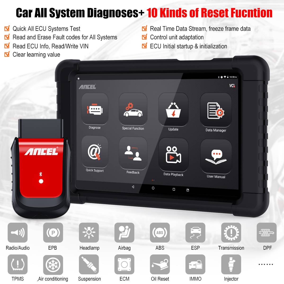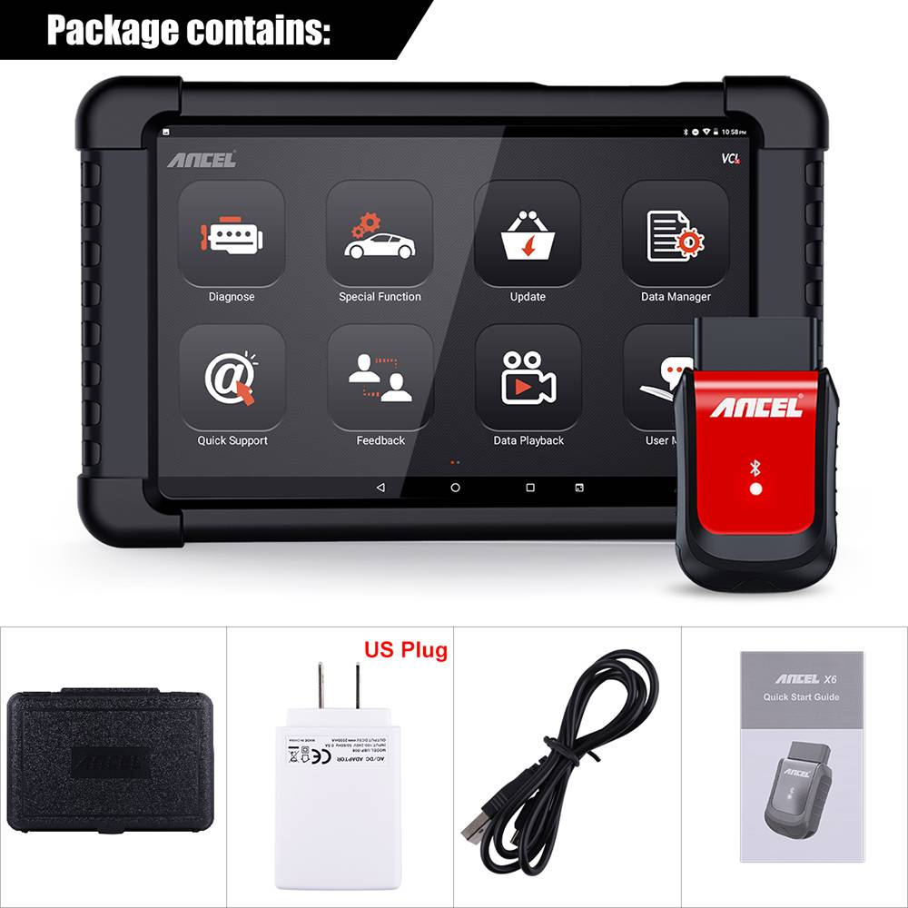 ANCEL X6-это новый усовершенствованный универсальный автомобильный диагностический инструмент с дисплеем планшета android. Его можно использовать напрямую без установки программного обеспечения. Поддержка 10 специальных функций сброса. Поддержка более 10000 моделей автомобилей по всему миру. Это дизайн гаража для ремонта автомобилей, салонов красоты автомобилей, автомехаников и владельцев автомобилей DIY.