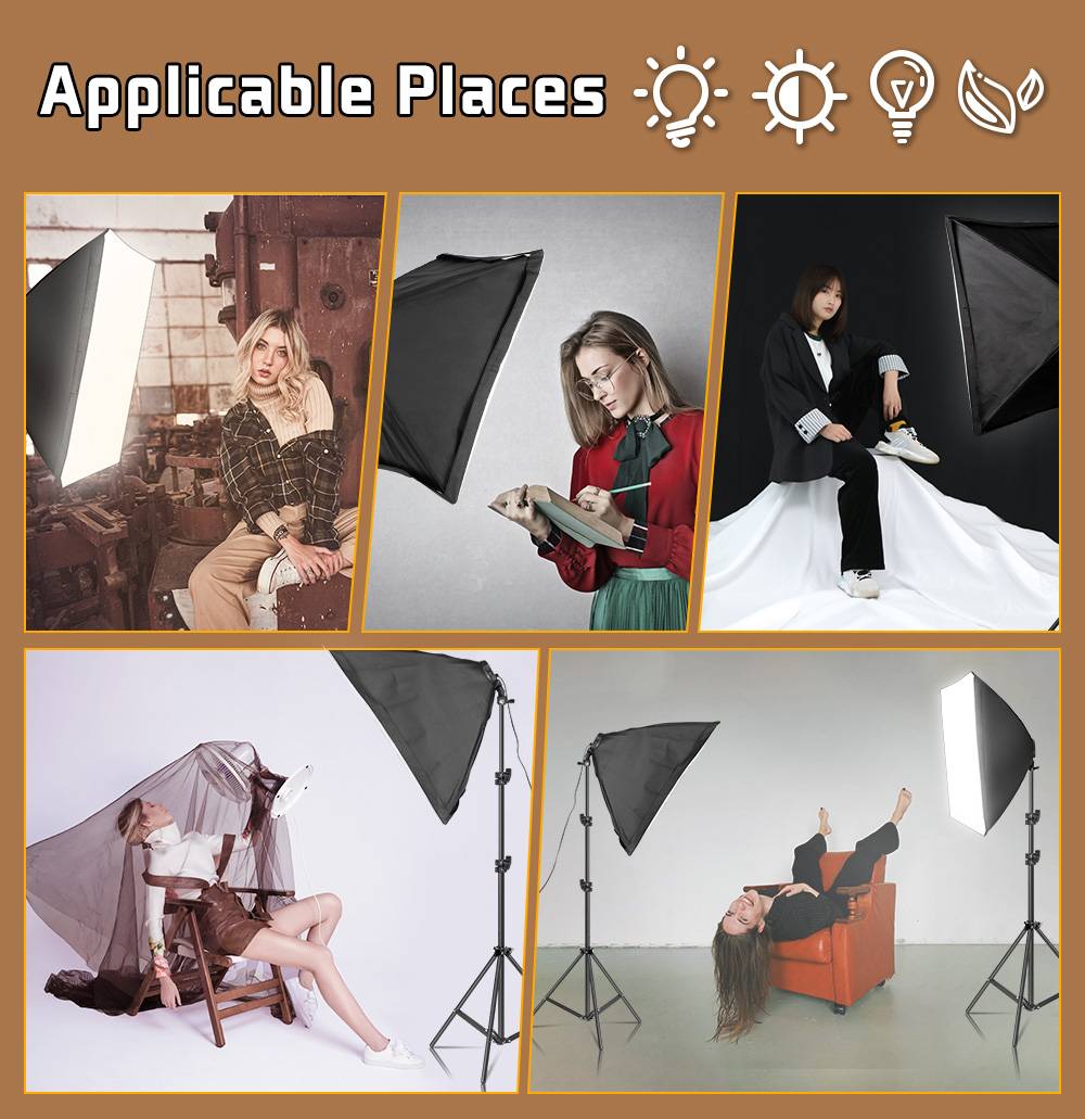 ❥50x70 софтбокс: белая мягкая ткань, равномерно смягчающий светильник; Отражающий серебристый внутренний, минимизирующий светильник; Безопасное и нетоксичное полиэфирное волокно, 4 гибких соединительных стержня.