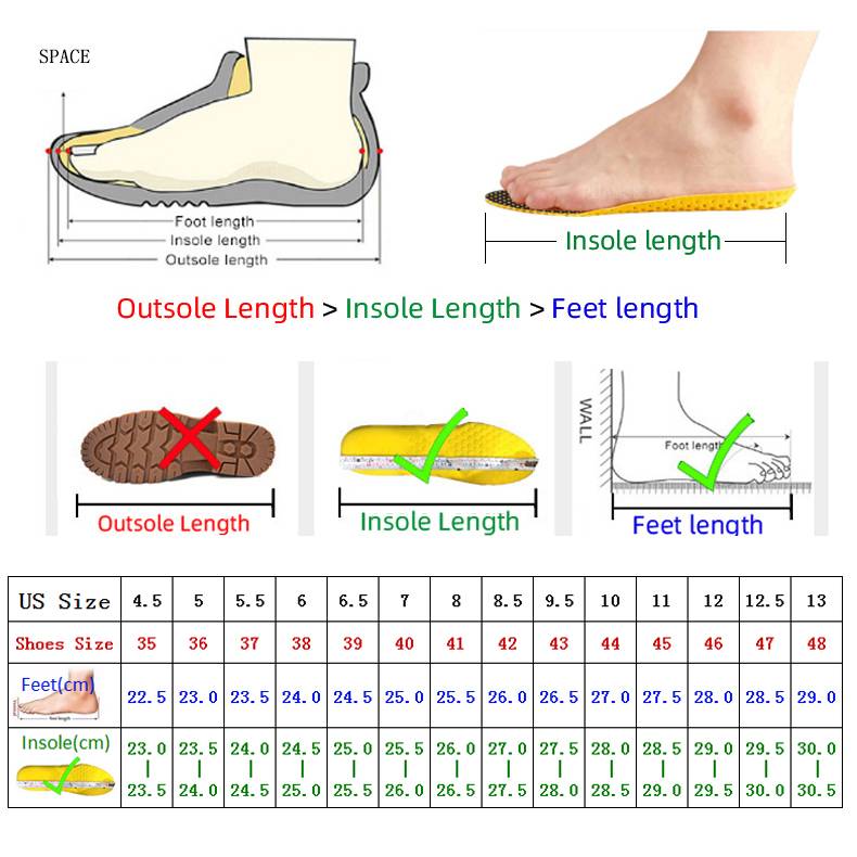 3.Согласно длине стельки, вы можете узнать длину своей стопы, а затем выбрать правильный размер.
