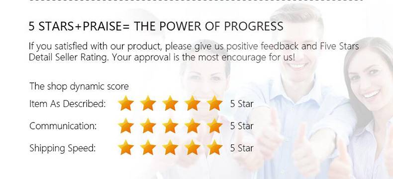 Удовлетворенность ваших клиентов и положительные отзывы очень важны для нас, пожалуйста, оставьте нам положительный отзыв и 5 звезд, если вы удовлетворены нашими продуктами и услугами.