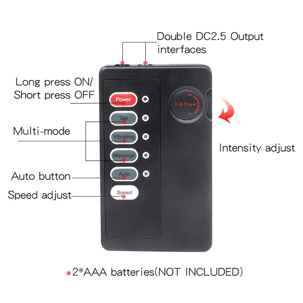 Загрузите батарейки AAA в контроллер, пожалуйста, обратите внимание на положительные и отрицательные.Подключите аксессуар к контроллеру.Нажмите «power» 2-3 секунды, чтобы включить устройство.Нажмите «Puise / Numb / Absorb / Auto», чтобы выбрать режим электрошока.Шестерня справа, может управлять питанием, вверх слаб, вниз сильный, вы можете отрегулировать питание до тех пор, пока вам не подойдет