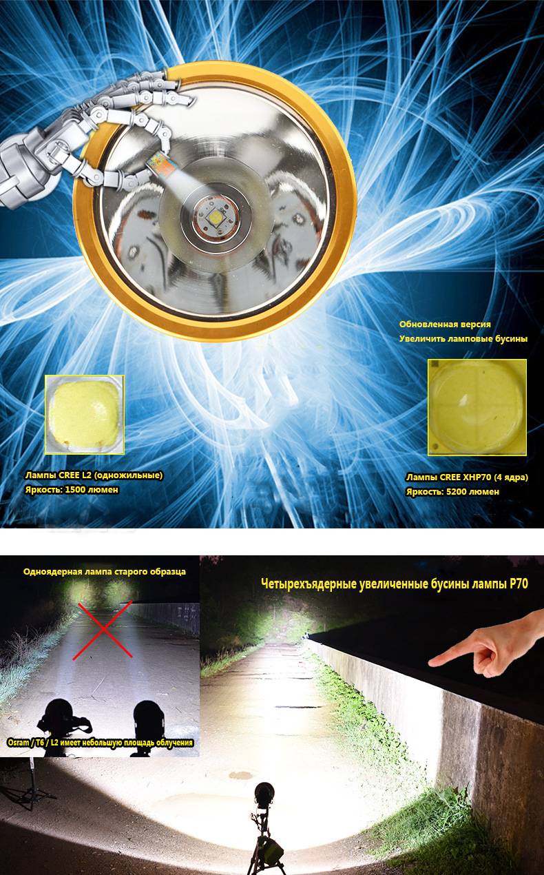 Водонепроницаемость: вся лампа и батарея в сборе имеют Водонепроницаемость IP 6 и выдерживают запах дождя и средней влажности!