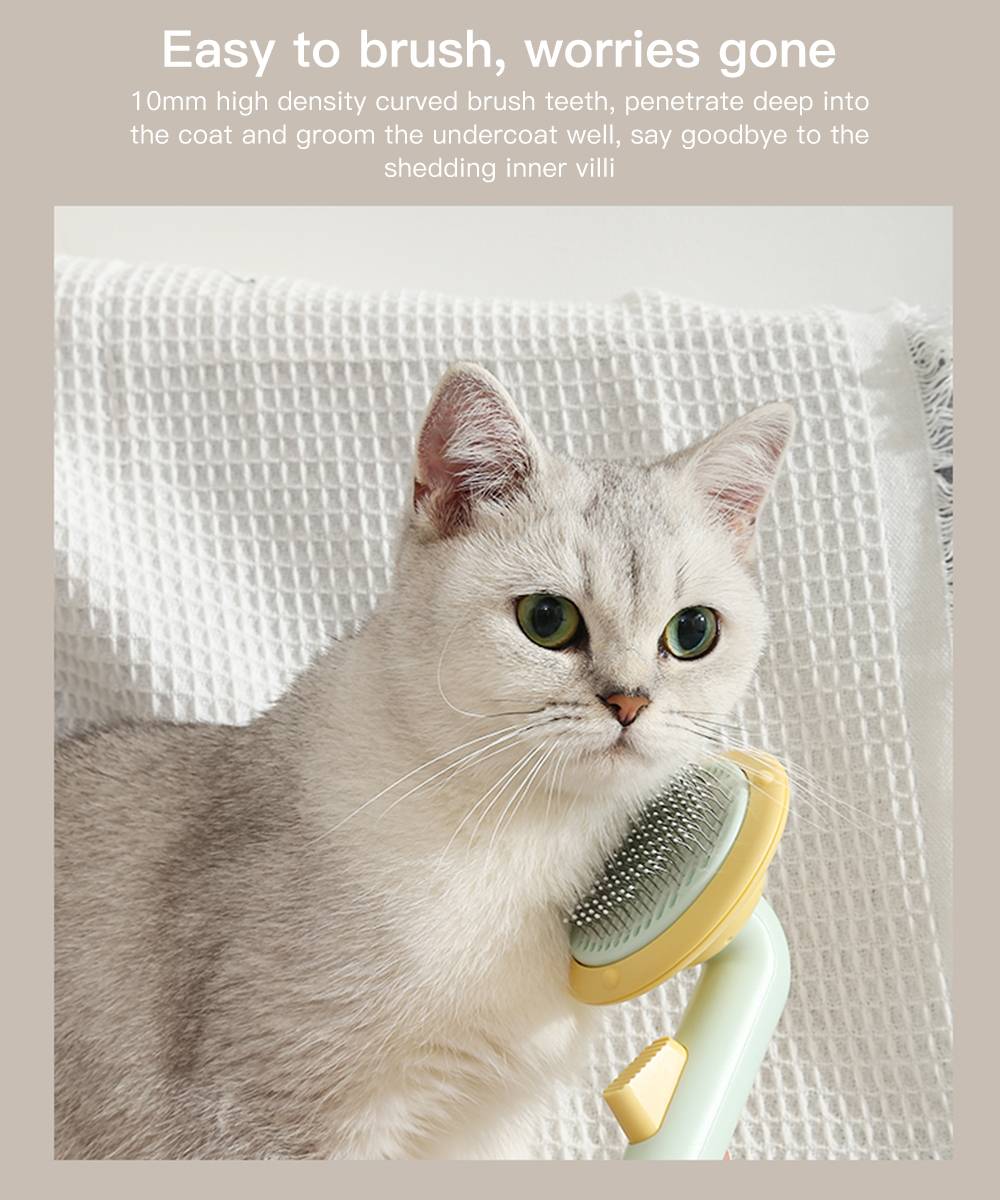 Расческа для ухода ха шерстью животных слегка изогнута, предназначена для глубокой очистки меха питомца. Массаж частиц не поцарапает кожу питомца, придавая вашему питомцу удовольствие и приятный уход.