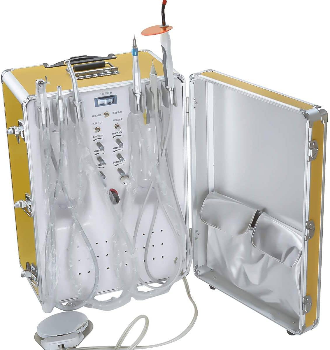 * Легко транспортируемый чемодан с выдвижной ручкой и колесами, стоматолог может перемещать устройство свободно и удобно;