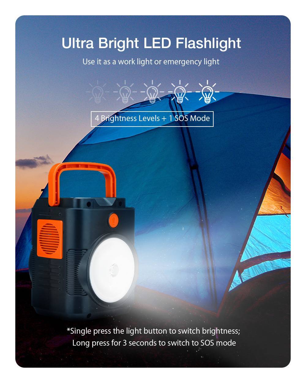 Фонарик: (4 Вт) общая яркость и высокая яркость и медленная мигание и быстрая мигание