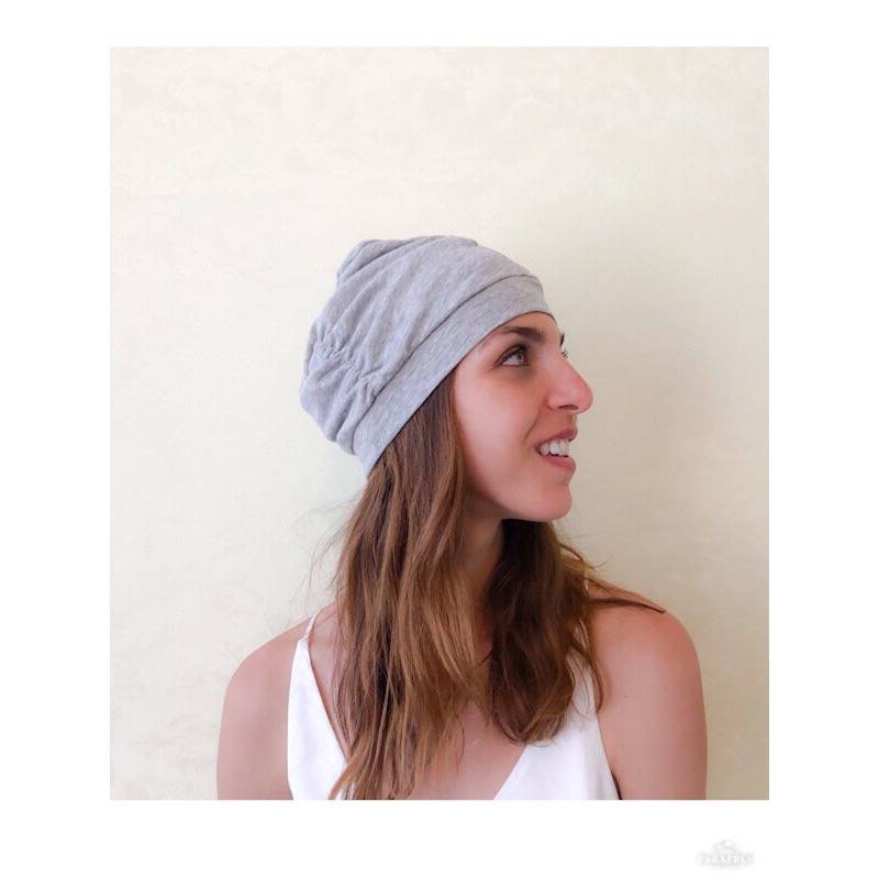 Небольшая присборенность шапки делает её оригинальной и запоминающейся. Шапка подходит для прохладного лета, весны / осени. Благодаря натуральному составу материала, шапка подойдёт также для девушек / женщин, столкнувшихся с потерей волос, проходящих химиотерапию.