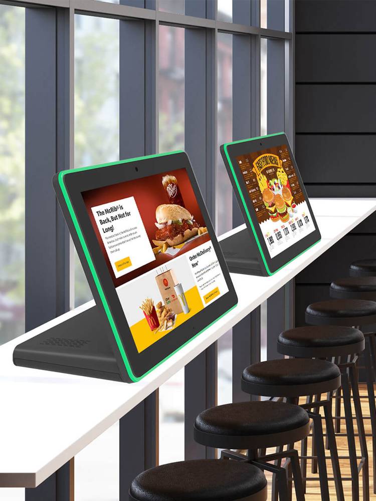 Android, IPS screen, integrated micphone, speaker, camera, wifi/ethernet for internet connection