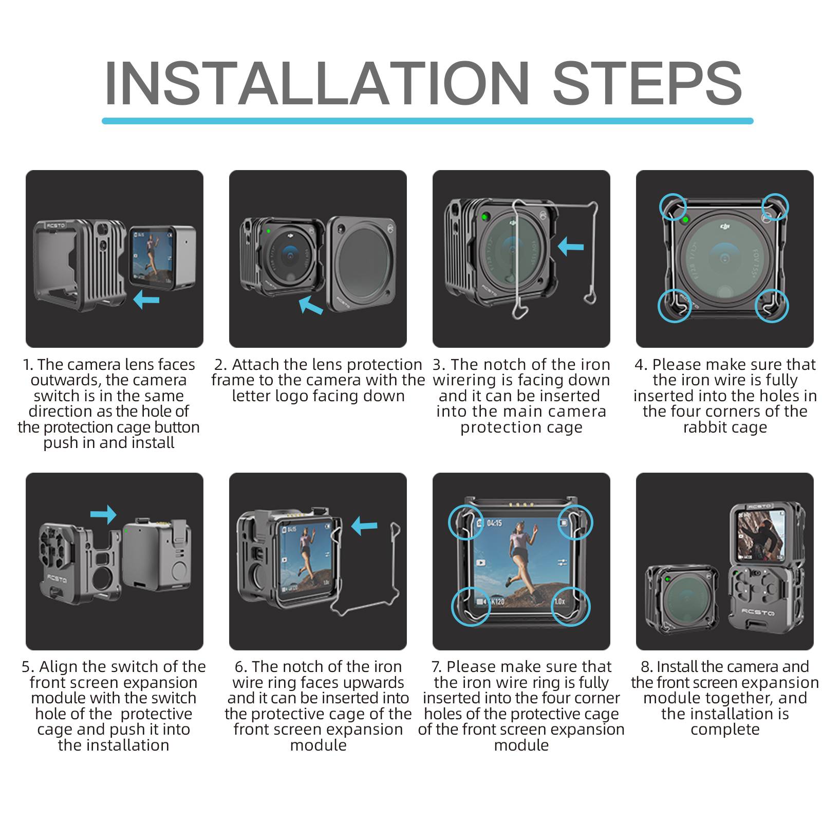 2. НаборОсновная Защитная клетка для камеры * 1 расширительный модуль переднего экрана Защитная клетка * 1 защитный УФ-фильтр * 1 основная Защитная клетка для камеры фиксирующая проволока * 1 расширительный модуль переднего экрана Защитная клетка фиксированная железная проволока * 1