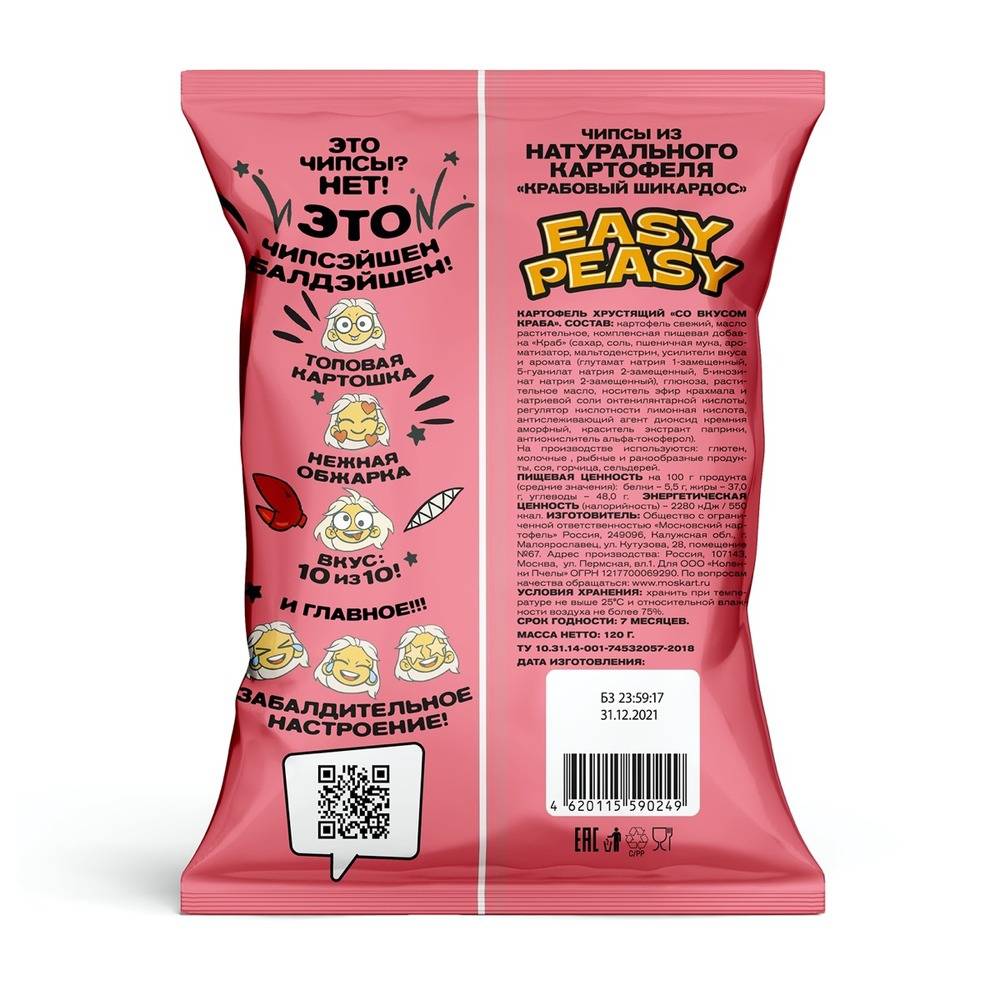 Обалденный крабовый аромат, будоражащий своей luxury изысканностью. Картофельные чипсы премиального качества по доступной цене. Созданы из топовой российской картошки и специй от ведущего немецкого производителя. Нескучный и модный дизайн, с которым не стыдно сделать селфи и устроить перекус ) Только у нас - красивая цветная фольга внутри под цвет вкуса. Одним словом , вкус, дизайн, упаковка - все для забалдительного настроения! А разве может быть иначе? Ведь это необычные чипсы от Насти Ивлеевой )