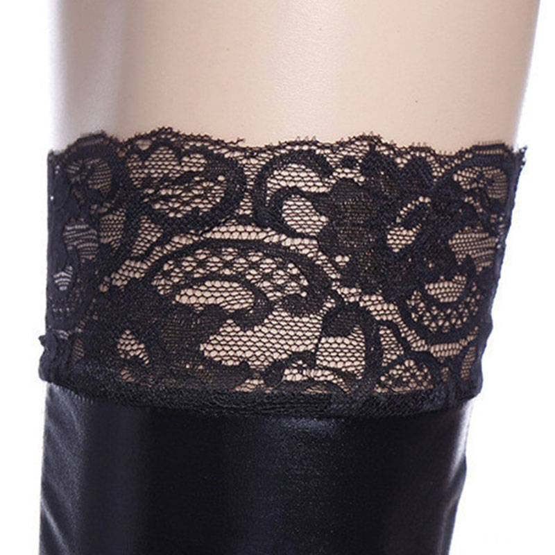 Упаковочный лист: женский с кружевной отделкой, кожаные чулки, сексуальные, выше колена, высокие носки X1 Pair