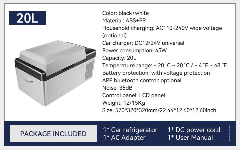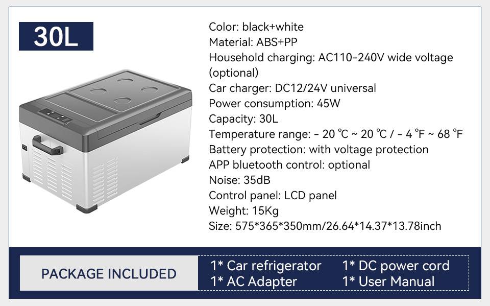 -Безопасность и энергосбережение: с защитой от напряжения, если напряжение слишком низкое, автомобильный холодильник автоматически отключит соединение, чтобы предотвратить разрядку батареи. Максимальная мощность 45 Вт, высокая производительность, экономия энергии 30%.