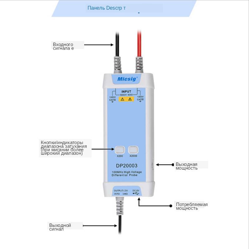 Micsig осциллограф 5600 в 100 МГц высокое напряжение дифференциальный зонд DP20003 комплект 3.5ns Время нарастания 200X / 2000X скорость затухания