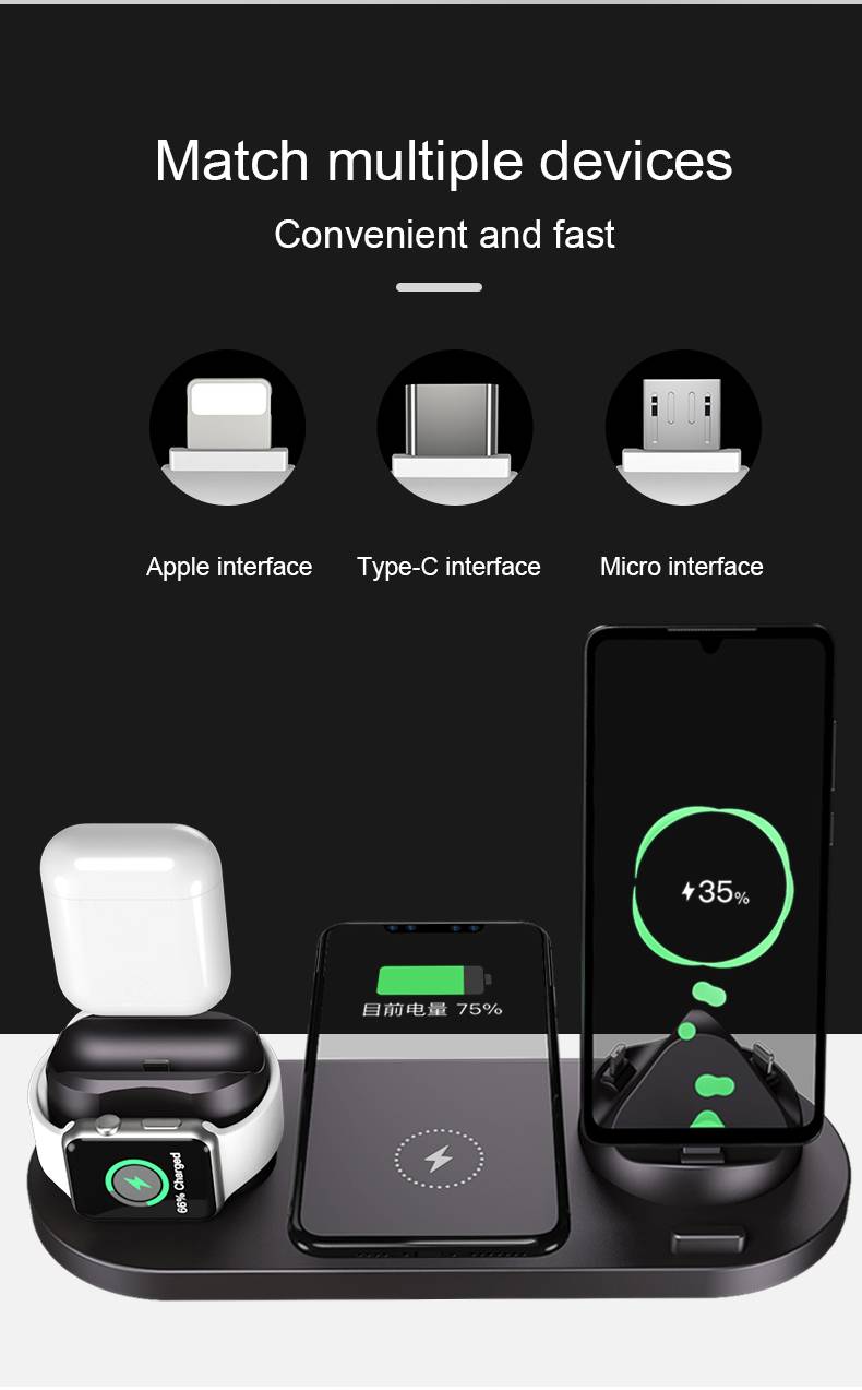 Название продукта: Новое Многофункциональное Беспроводное зарядное устройство шесть в одном подходит для многоинтерфейсных беспроводных зарядных устройств для мобильных телефонов Apple, наушников и часов