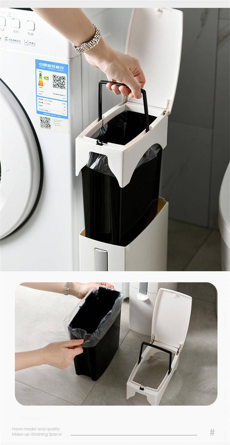 1. С щеткой для унитаза: мусорная щетка для унитаза 2 в 1 наборе, щетка для унитаза может быть сложена и скрыта в ведре, экономя место для хранения