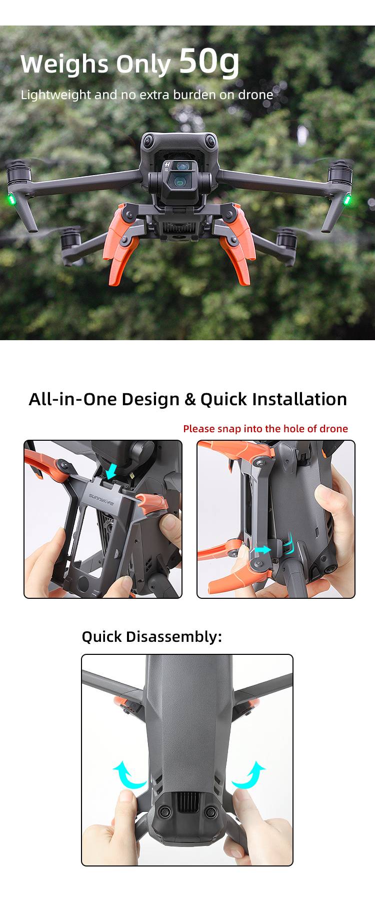 -Эффективно увеличивается на 38 мм. Значительно увеличьте расстояние между дроном и землей. И держать Дрон и датчик в безопасности и чистоте во время посадки и взлета.