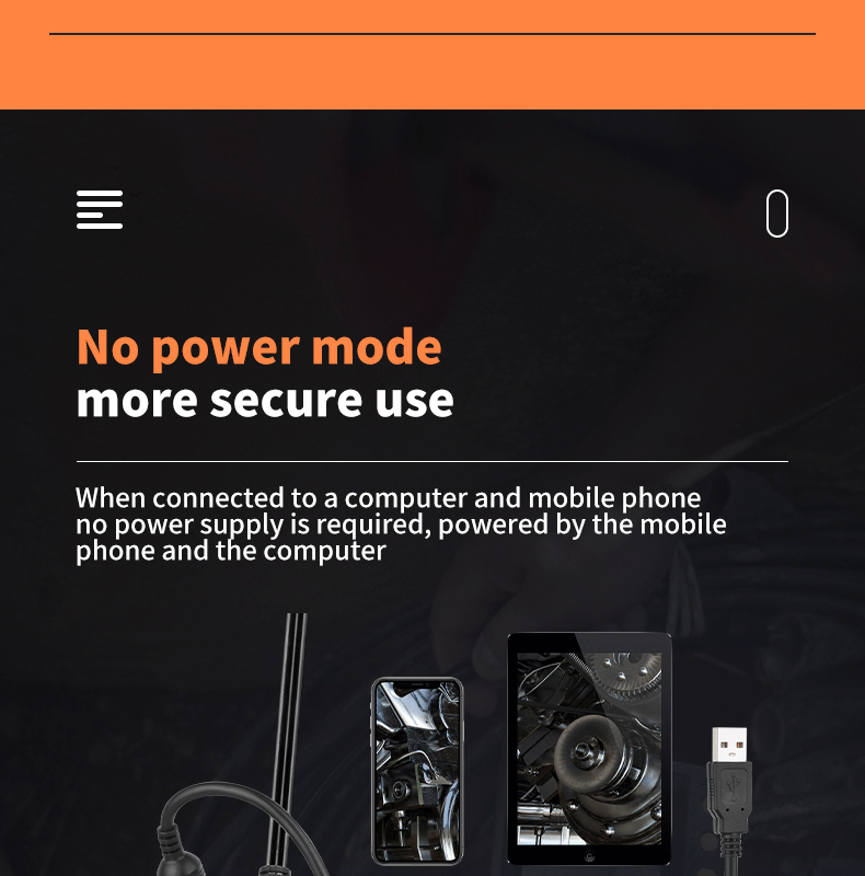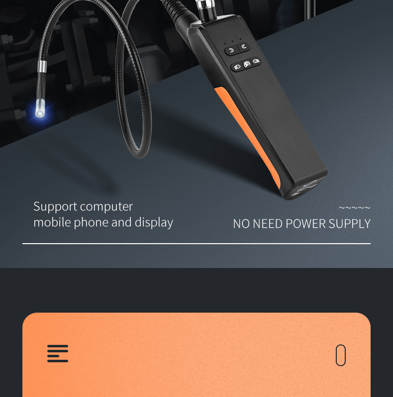 6. Водонепроницаемая Головка камеры и кабель соответствуют стандарту IP67 для просмотра изображений и видео прямо на мобильном телефоне.
