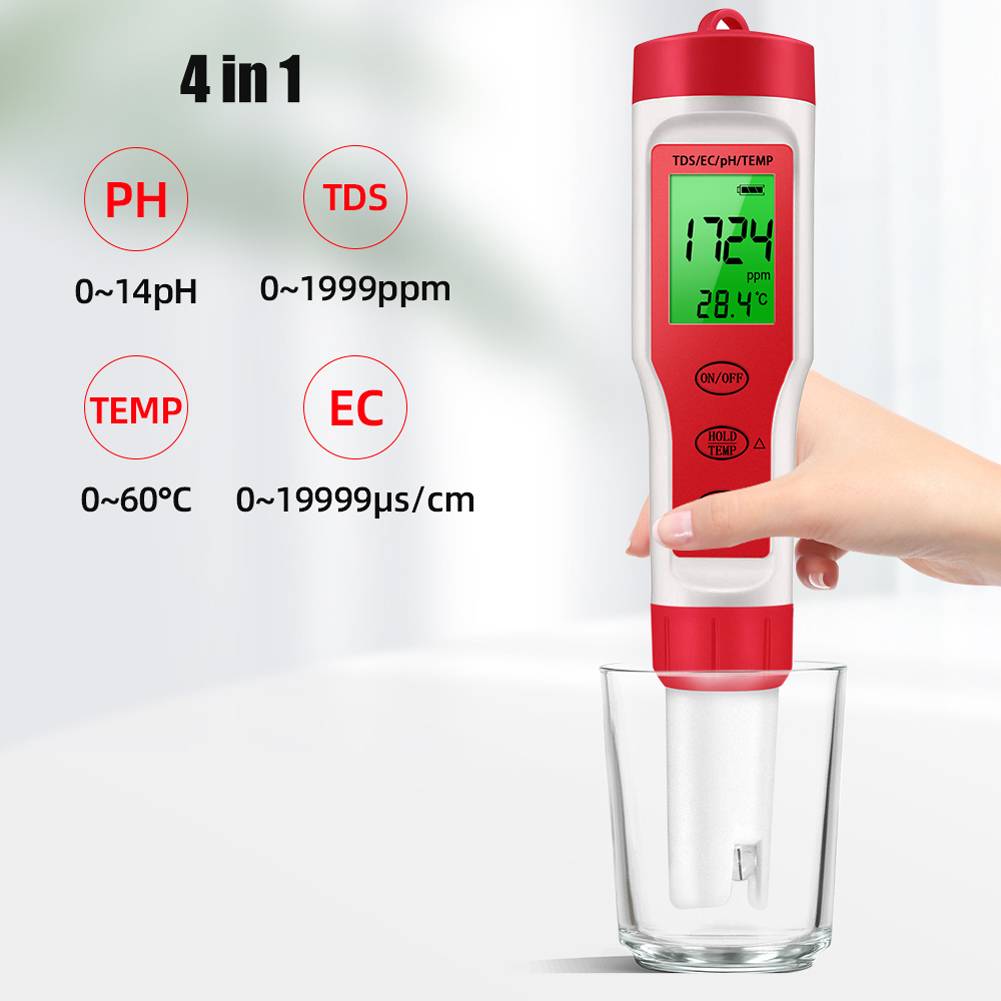 Этот 4 в 1 тестер качества воды может измерять PH, общее количество растворенных твердых веществ, EC и температуру для вас. Этот тестер поможет вам полностью понять качество воды в испытанной воде, чтобы вы могли пить или использовать более легко. Если вы заинтересованы в этом продукте, приходите и попробуйте, это не подведет вас.