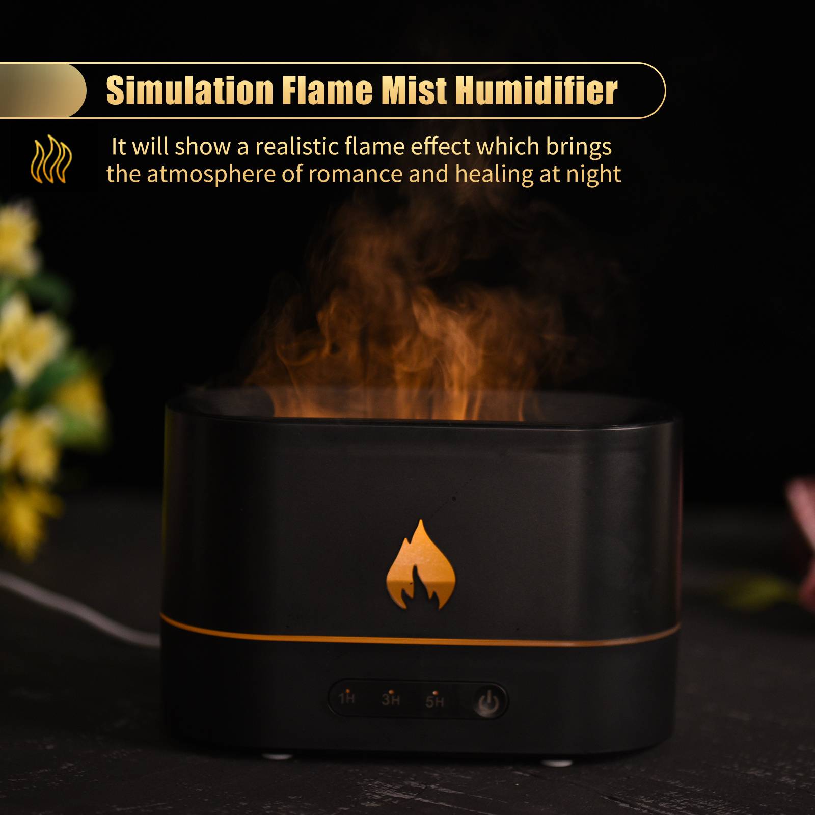 Распылитель для ароматерапии был спроектирован-светодиодный светильник в сочетании с туманом, он покажет реалистичный эффект пламени, который приносит атмосферу романтики и исцеления ночью. Он может увлажнить воздух на 360 ° равномерное увлажнение, так что вы можете дышать свежим воздухом, пахнет свежим воздухом, как вы находитесь в лесу.