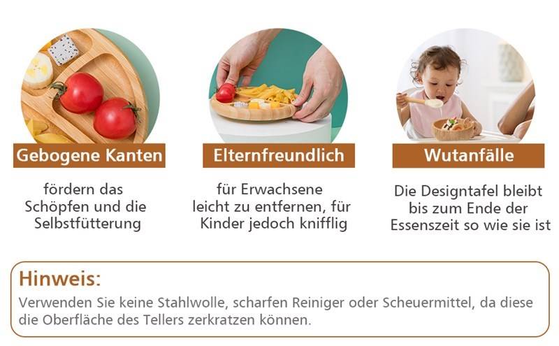 Ребенок-светодиодный отлучение: Наша бамбуковая Тарелка на присоске-это универсальная деревянная тарелка для кормления ребенка, светодиодный отлучение (BLW) или самокормление малыша. Эти бамбуковые пластины подходят для детей в возрасте от 4 месяцев до 72 месяцев.