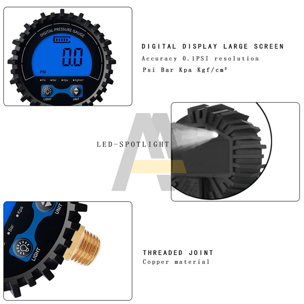 Цифровой манометр для шин высокой точности 3-255PSI Подсветка ЖК-дисплей медная резьба датчик давления воздуха для автомобиля мотоцикла велосипеда