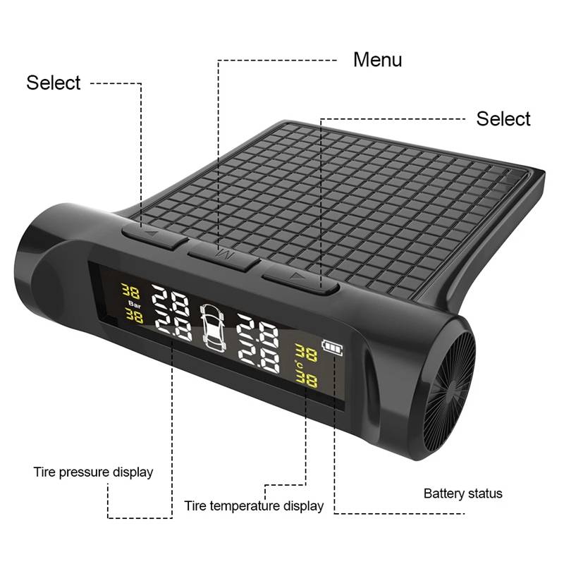 Автоматический мониторинг и предупреждение в режиме реального времени, такие как низкое давление в шинах, высокое давление в шинах, быстрая утечка воздуха, высокая температура в шинах и низкое напряжение батареи