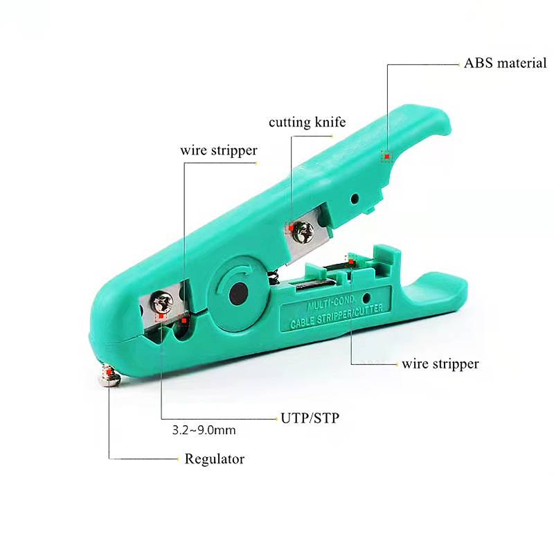 4. The quality of the blade is good, the cut port is flat and free of burrs, and the distance between the two metal blades is moderate. It can easily strip the rubber of the twisted pair, but it is not easy to cut the network cable; it has the UTP/STP round shape Twisted pair function
