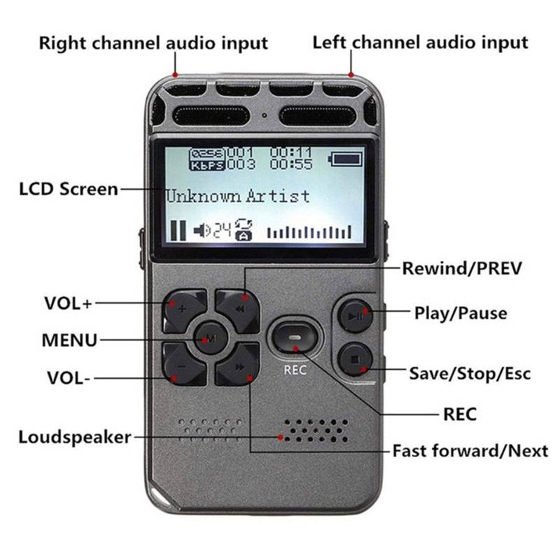 Супер длительный срок службы батареи: сверхнизкая мощность цепи для достижения долгое время записи, этот аудио рекордер может работать непрерывно до 32 часов и более.